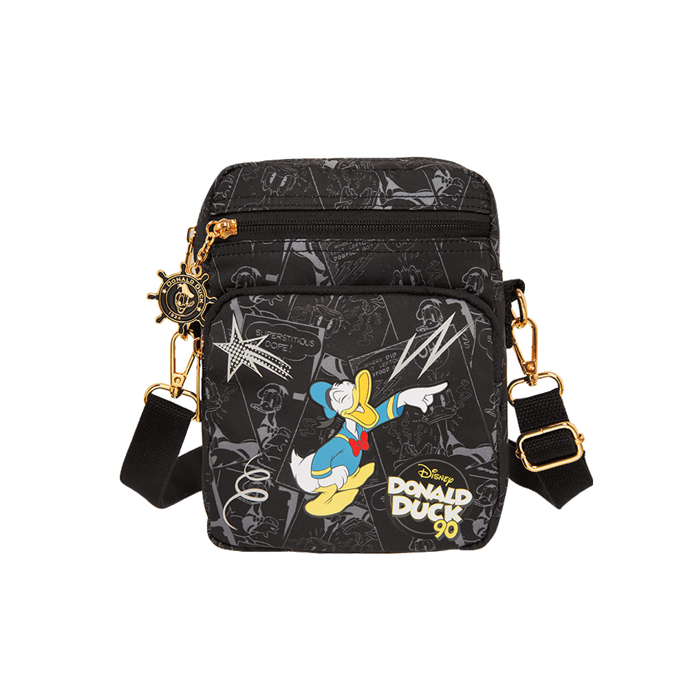 【正版DISNEY】唐老鸭90周年直式侧背包-黑色 ❌原价RM135❌ 现在只需【RM89】 ☁️唐老鸭90周年纪念包款 ✅经典图素×漫画涂鸦风格印花 ✅水手船舵造型拉片 ✅率性直式设计 迪士尼唐老鸭90周年生日快乐! 以经典图素×漫画风格涂鸦,搭配水手船舵造型拉片,打造潮流率性包款! 🇼🇸台湾代购 赶快PM我们下单🛒📲