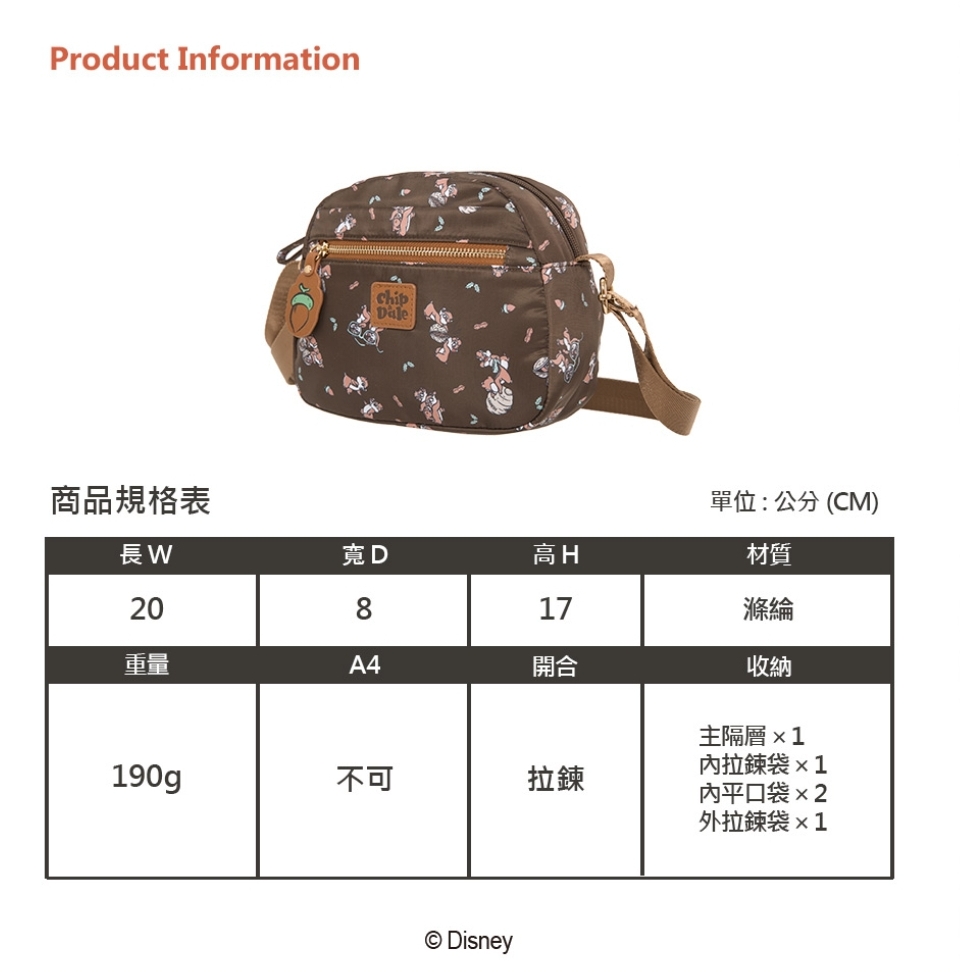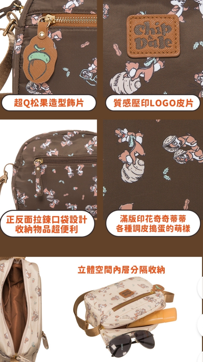 【正版DISNEY】奇奇蒂蒂淘气松果侧背包-棕色 ❌原价RM159❌ 现在只需【RM129】 ✅局部搭配质感金色拉鍊 ✅小巧可爱迷你尺寸 ✅可收纳长夹 超人气花栗鼠兄弟-Chip ''n Dale 休闲包款俏皮登场! 奶茶色特调印花搭配立体电绣字母,可爱感十足! 🇼🇸台湾代购 赶快PM我们下单🛒📲