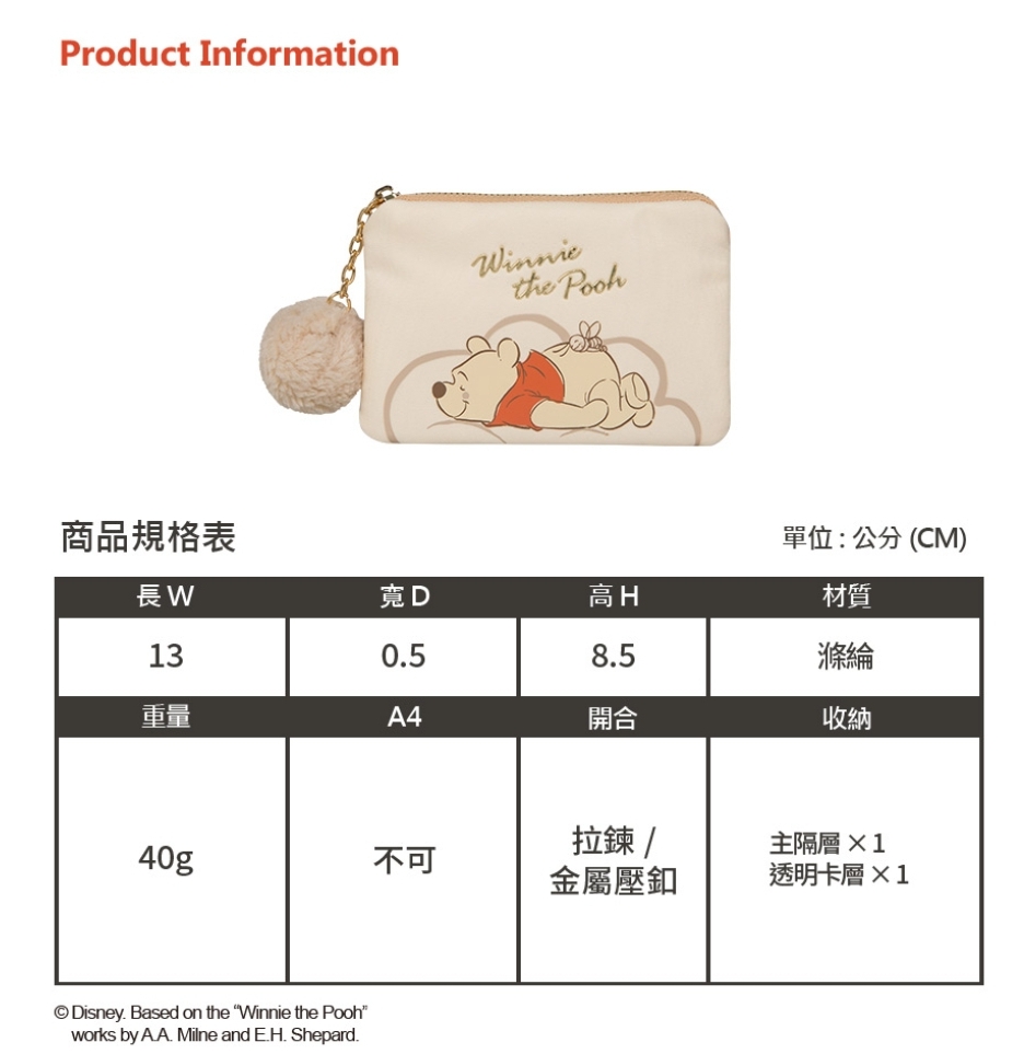 【正版DISNEY】小熊维尼棉花糖票卡零钱包
