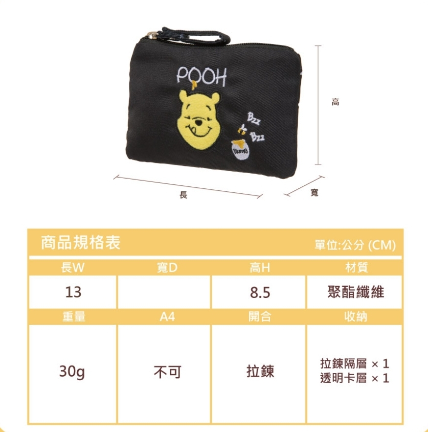 【正版DISNEY】小熊维尼甜蜜蜂潮票卡零钱包-黄色/黑色✨ ❌原价RM99❌ 现在只需【RM59】 ✅背面隔层可独立放置卡片 ✅收纳钞票、卡片都没问题 Pooh! 甜蜜蜂潮休闲女包新登场! 全系列推出经典黑/活力黄两色,结合小熊维尼毛茸茸的黄色脸庞及小蜜蜂立体刺绣,可爱指数5颗星! 🇼🇸台湾代购 赶快PM我们下单🛒📲