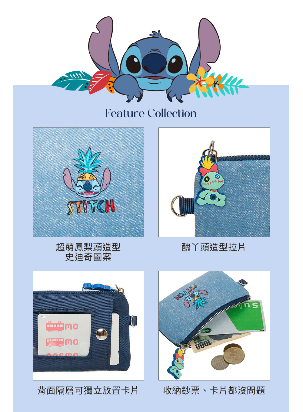 【正版DISNEY】星际宝贝史迪奇票卡零钱包-蓝色 ❌原价RM65❌ 现在只需【RM49】 ✅背面隔层可独立放置卡片 ✅可收纳卡片、零钱 星际宝贝史迪奇捣蛋登陆! 经典黑|星际蓝休闲包款,融合夏威夷风格及史迪奇调皮模样,点缀角色造型饰片,为包包注入欢乐氛围的可爱感! 🇼🇸台湾代购 赶快PM我们下单🛒📲