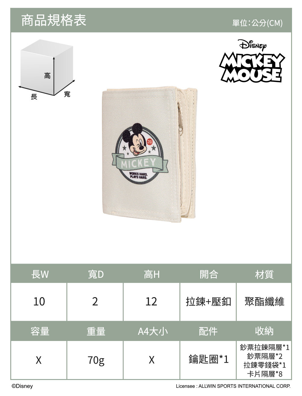 【正版DISNEY】米奇与好朋友对折短夹-灰绿色 ❌原价RM135❌ 现在只需【RM89】 ✅二折式钞票零钱独立隔层 ✅内有八个证件票卡夹层 ✅钥匙圈可勾随身钥匙不易弄丢 「Disney」中深受大家喜爱的角色,推出一系列日常必备包款,展现全新时尚风貌!商品采用高密度聚酯纤维面料,耐磨轻巧防泼水,款款都是值得入手的收纳好包! 🇼🇸台湾代购 赶快PM我们下单🛒📲