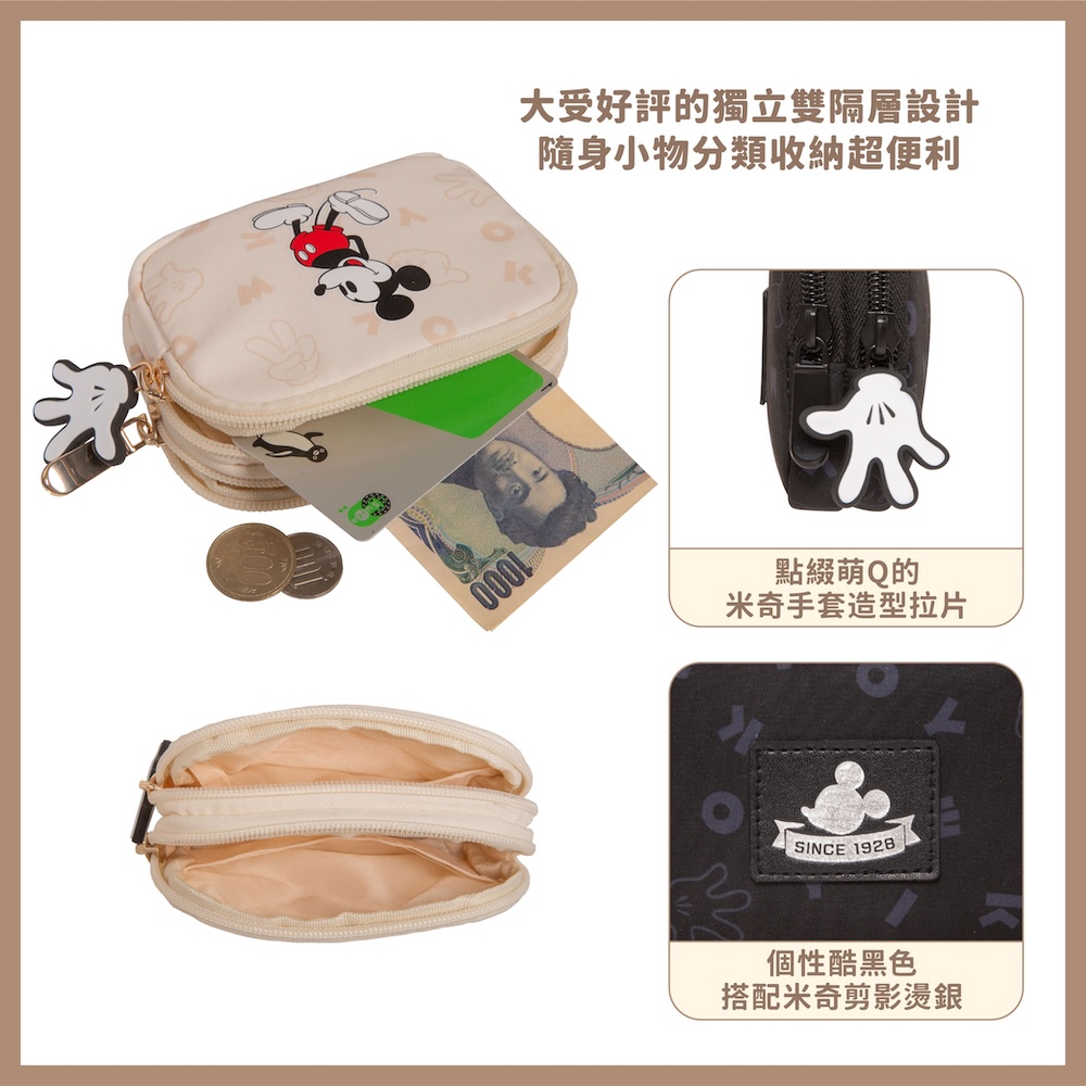 【正版DISNEY】米奇复古米奇双层零钱包-黑色/米色 ❌原价RM119❌ 现在只需【RM89】 ✅双拉鍊隔层设计 ✅卡片、零钱、随身小物分类收纳超便利 复古米奇系列全新推出温柔奶油色|个性酷黑色,以经典字母融合充满童趣的剪刀石头布,为休闲系列包款注入可爱的率性气息! 🇼🇸台湾代购 赶快PM我们下单🛒📲