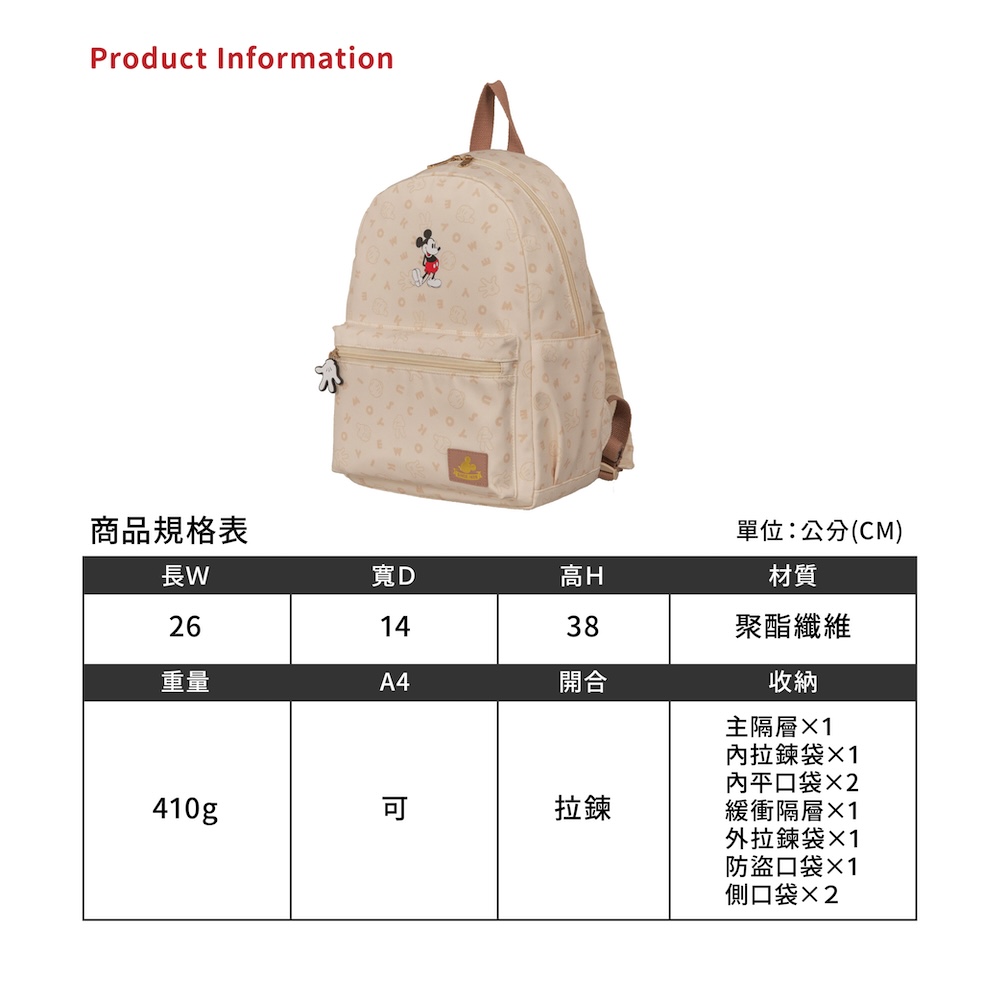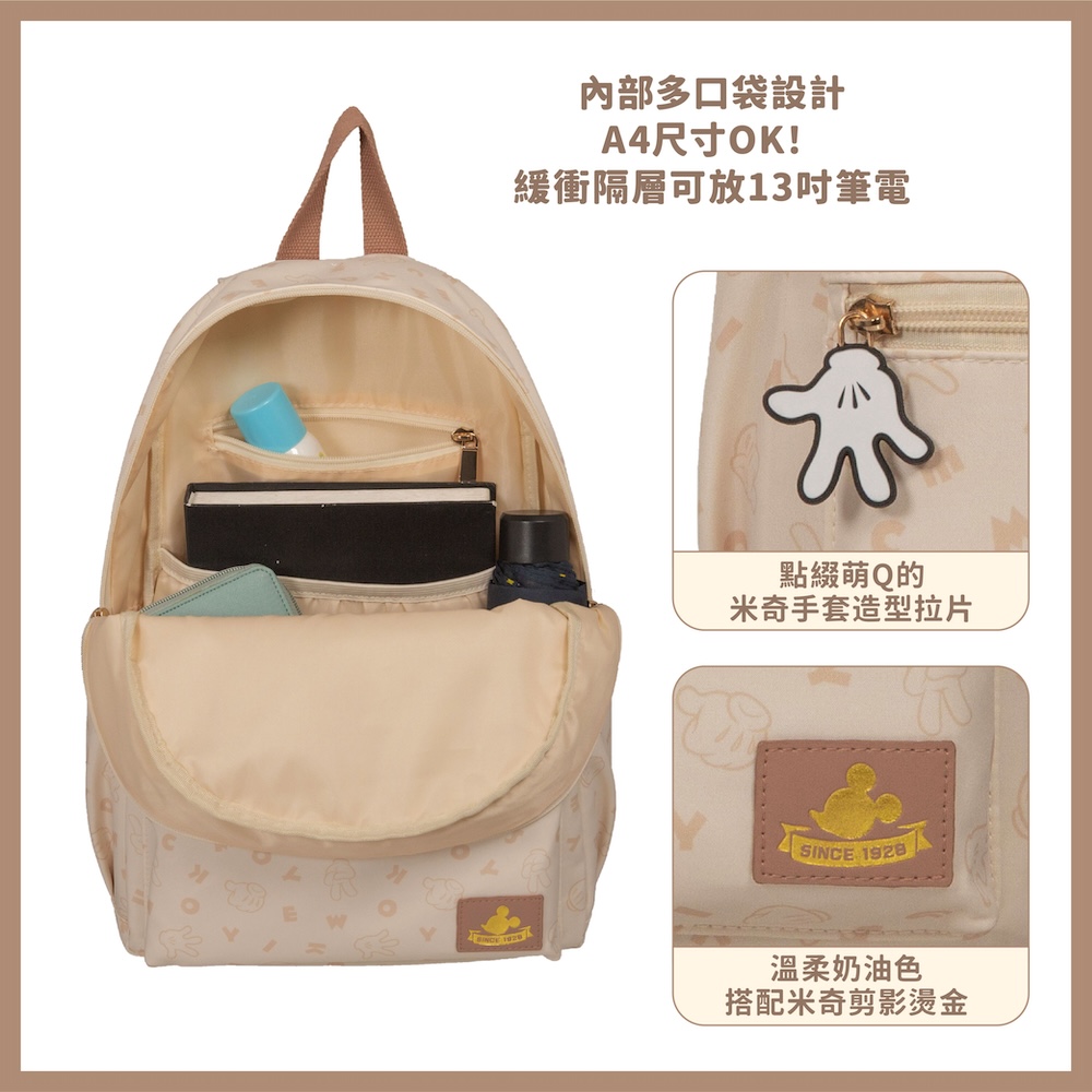 【正版DISNEY】米奇复古米奇后背包-米色 ❌原价RM259❌ 现在只需【RM199】 ✅可收纳A4尺寸 ✅缓冲隔层可放13吋笔电 ✅贴心防盗口袋设计 ✅可套行李箱拉杆,轻松出游最省力! 复古米奇系列全新推出温柔奶油色|个性酷黑色,以经典字母融合充满童趣的剪刀石头布,为休闲系列包款注入可爱的率性气息! 🇼🇸台湾代购 赶快PM我们下单🛒📲
