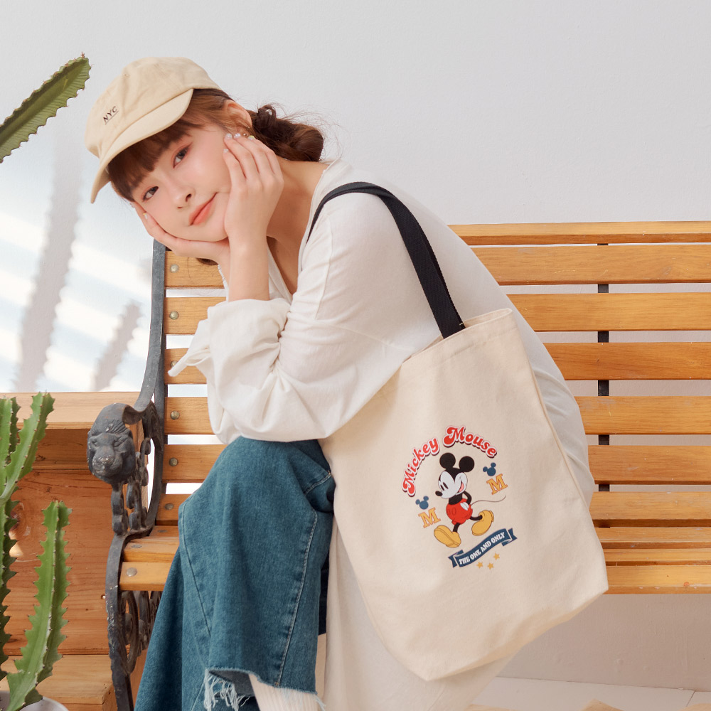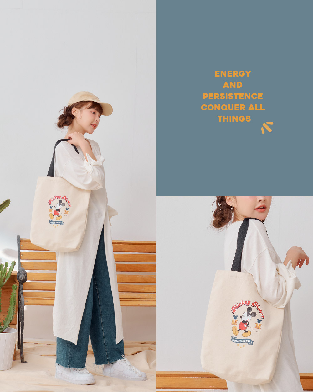 【正版DISNEY】经典米奇休闲米奇帆布肩背包-米色 ❌原价RM135❌ 现在只需【RM89】 ✅超萌学院派米奇 ✅可收纳A4尺寸 ✅购物通勤最佳小帮手! 迪士尼人氣-米奇Chill登場! 帆布原色搭配撞色背帶,打造最百搭的休閒風格包款! 🇼🇸台湾代购 赶快PM我们下单🛒📲