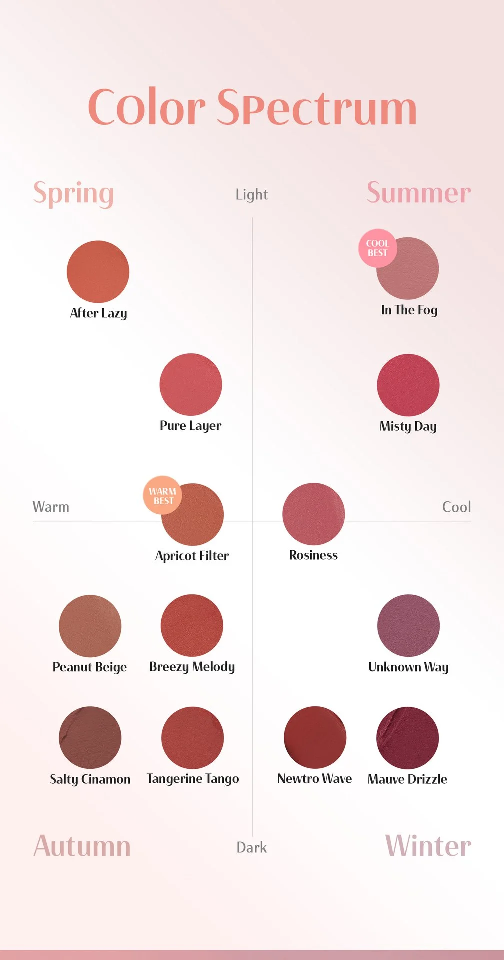 『3CE 柔雾管口红』RM69 哑光质地 /上嘴轻薄 / 不拔干 覆盖力也不错✅深唇可以涂 色号的调色都很有氛围感🫦 【13种颜色✨】 🌸SALTY CINNAMON 肉桂色,日常百搭 🌸PEANUT BEIGE 奶油南瓜,高级显白 🌸APRICOT 甜杏滤镜,初恋感 🌸ROSINESS 半熟西瓜瓤色,韩系甜妹 🌸IN THE FOG 柔雾橡皮粉,自带慵懒氛围 🌸MISTY DAY 粉雾之日显,嫩元气女团 🌸UNKNOWN WAY 烟熏豆沙色,酷飒冷感 🌸MAUVE DRIZZLE 迷雾浆果色,高冷气场 🌸NEWTRO WAVE 复古正红,浓颜天菜 🌸PURE LAYER 纯欲柿红番茄,元气减龄 🌸AFTER LAZY 初见橘,夏日多巴胺 🌸BREEZY MELODY 悸动橘 🌸TANGERINE TANGO 暧昧橘