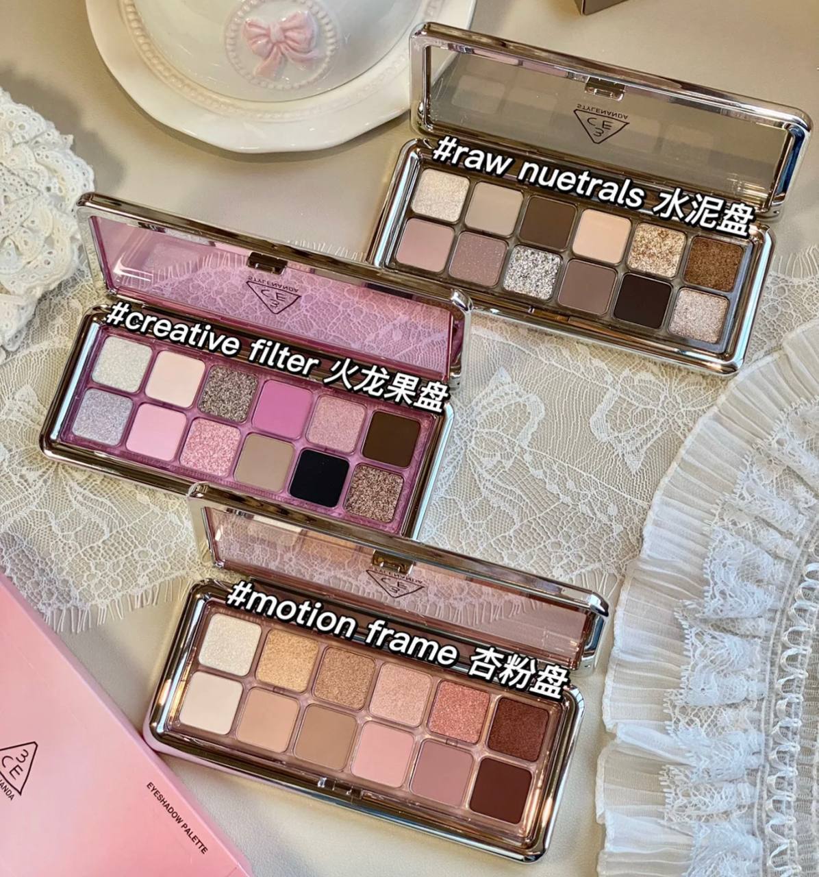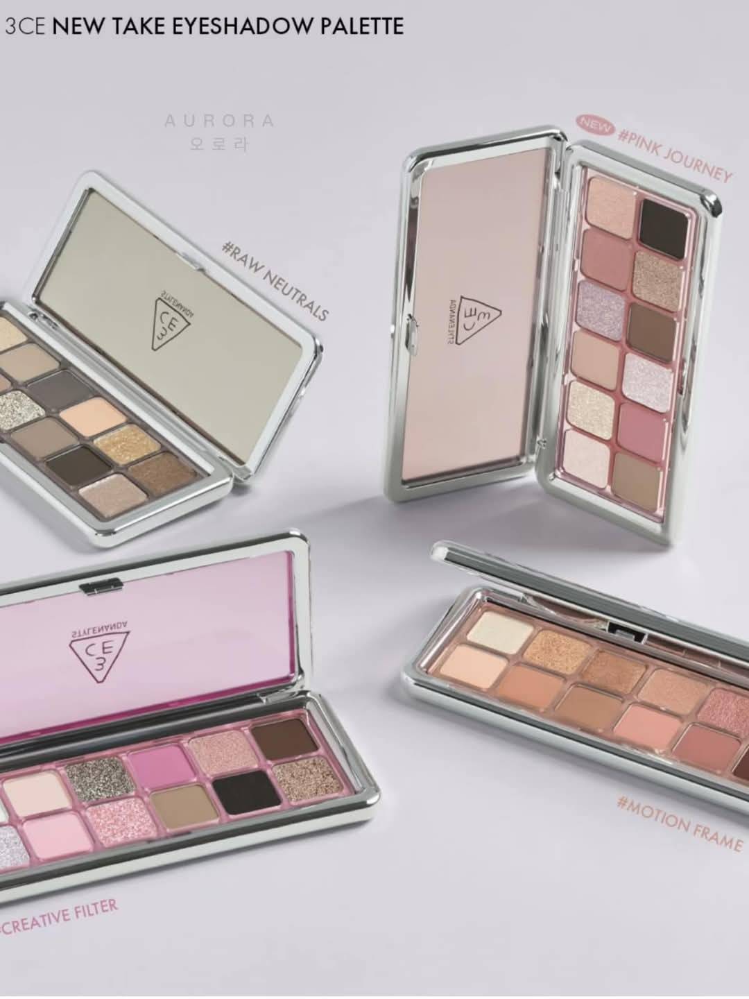 【 3CE 12色眼影盘 】RM135 New Take 眼影盘 😆 这次完全升级 从9色1盘到现在的12色1盘 超值得!包装和腮红的一样,包装盒和眼影中间有一道透明亚克力~ 🌸 Raw Neutrals 偏冷调的水泥灰棕色 🌸 Creative Filter辣妹玫粉调火龙果色 🌸 Motion Frame 低饱和裸调杏粉色 🌸 Pink Journey 低饱和粉棕色 千禧辣妹 / 性感纯欲风 / 高级裸色 一次性满足你😍