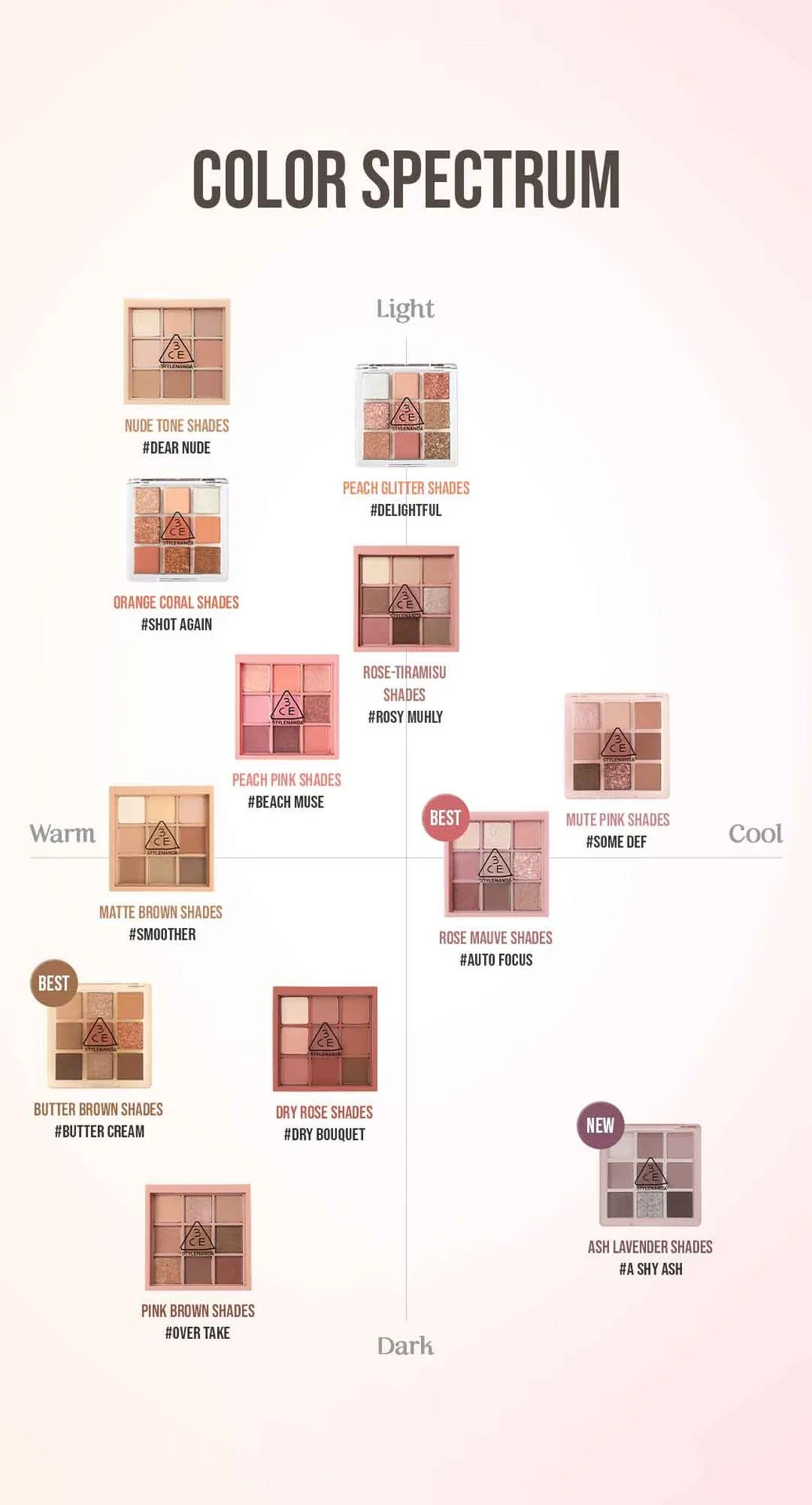 【 3CE 9宫格全色合集 】 RM109 一盘共有九色,不管想要雾面色、亮片色都有,而且最重要的是九宫格眼影盘基本上已经配好眼影色系,女孩们不需要再困扰要买多少色的眼影,新手们也可以简单的找到自己想要的色调画 😍😍 🌸 Some Def(芋泥盘) 🌸 Smoother(深棕哑光盘) 🌸 Butter Cream(黄油蜂蜜盘) 🌸 Dear Nude(纯哑光奶茶盘) 🌸 Shot Again (全闪橘色) 🌸 Overtake (大地色) 🌸 Auto Focus (紫色大地) 🌸 Rosy Muhly(粉橘棕) 🌸 Delightful 🌸 Dry Bouquet 🌸 Beach Muse 🌸 A Shy Ash