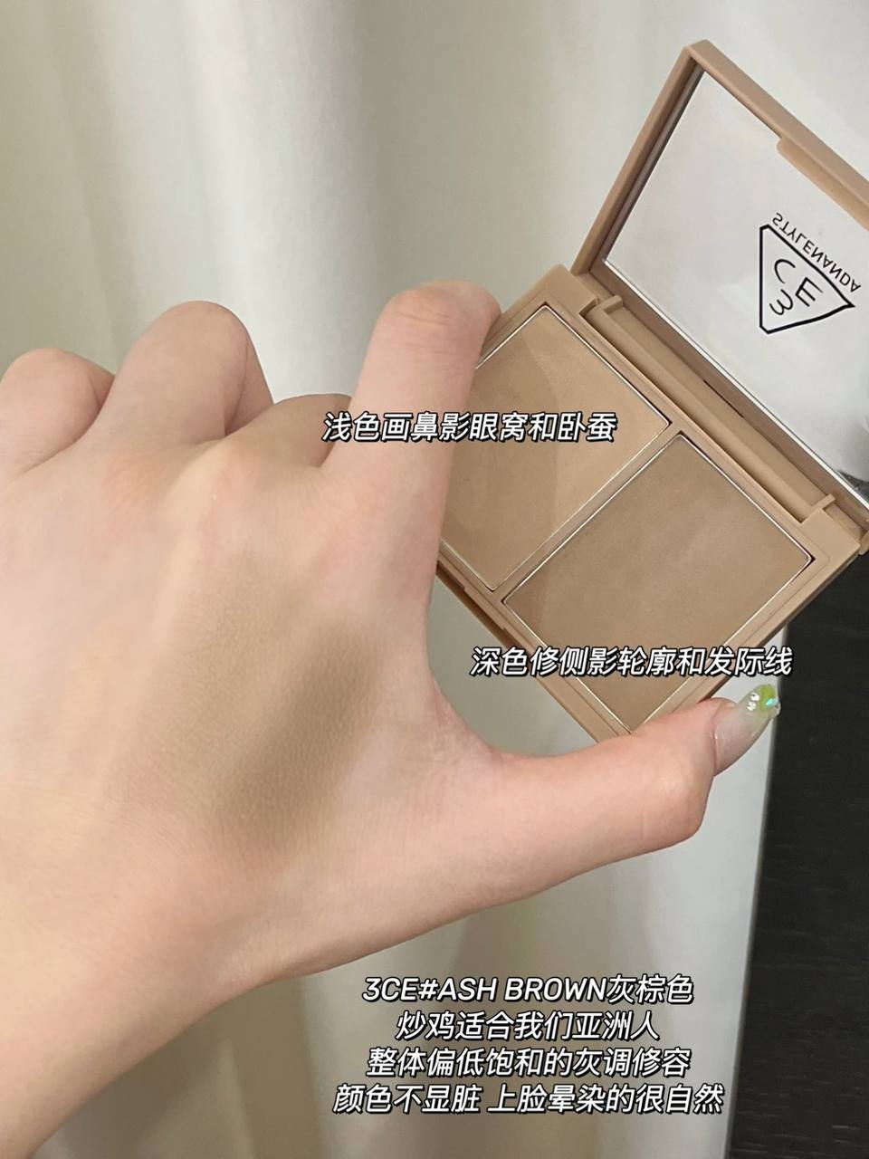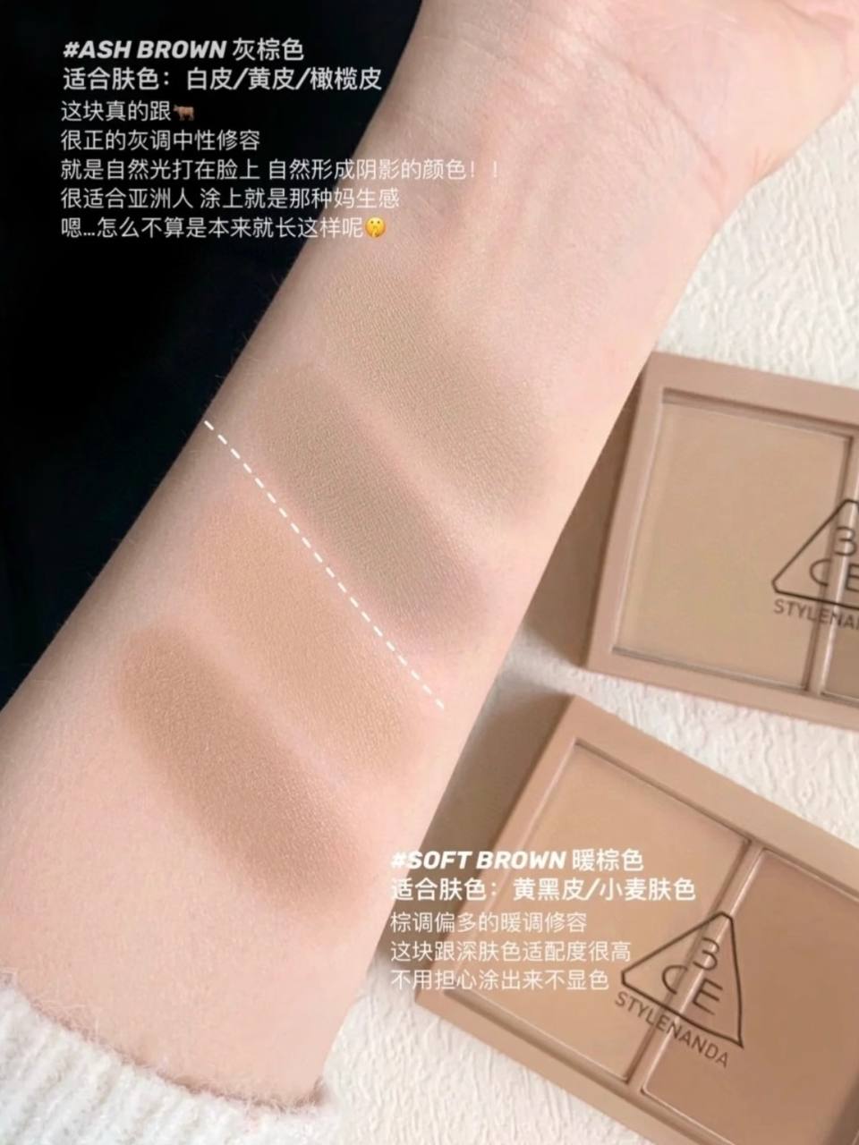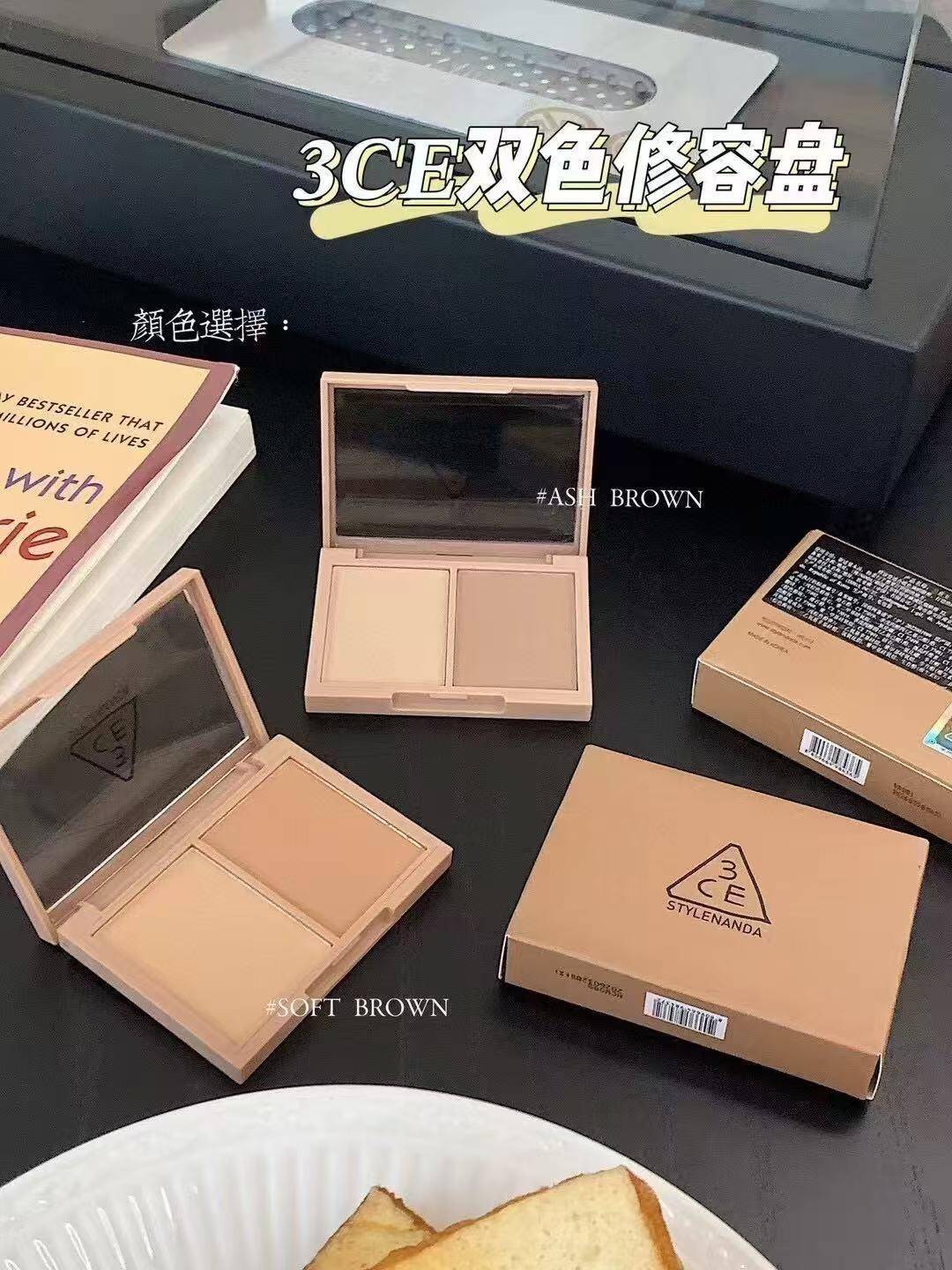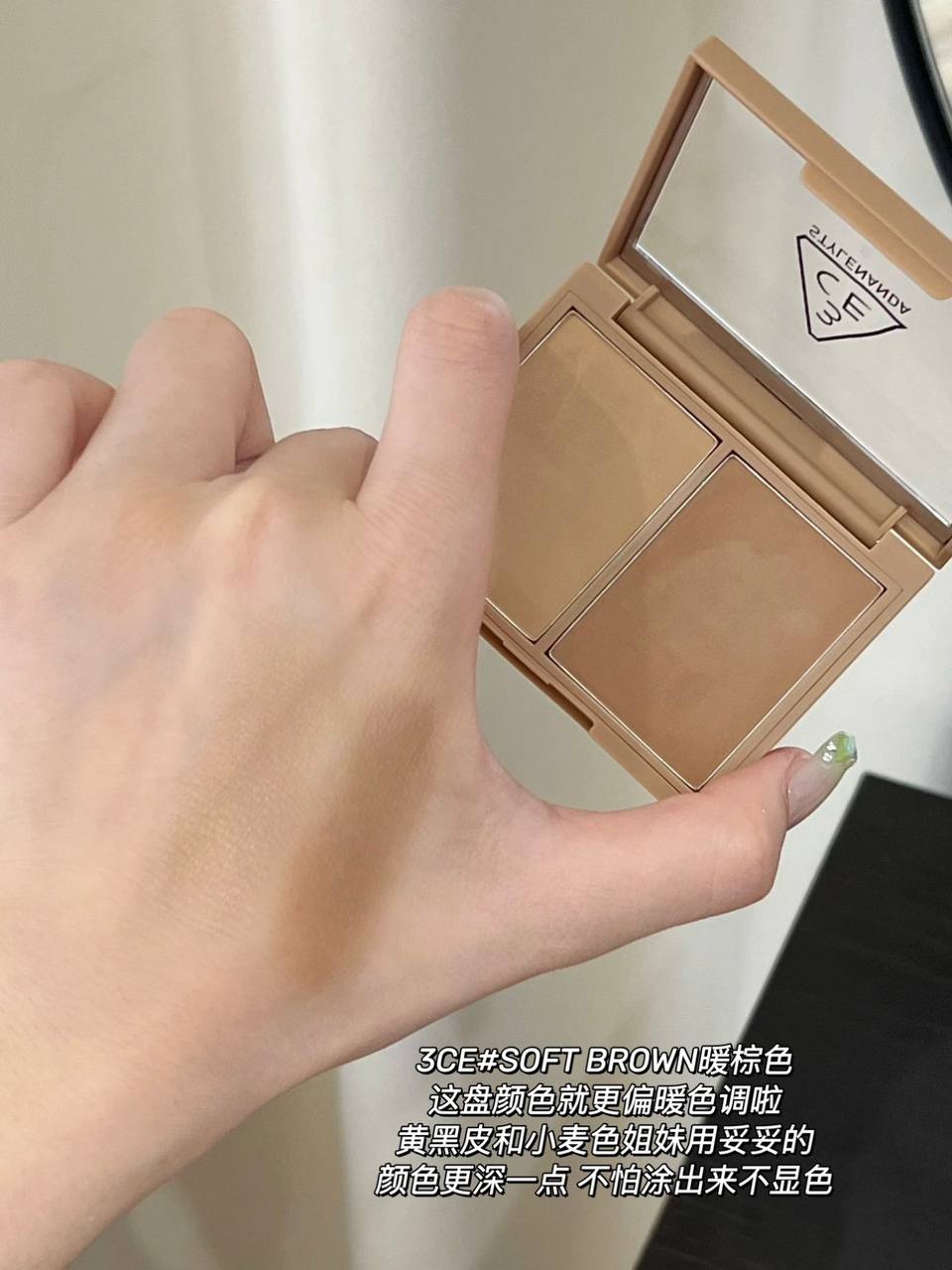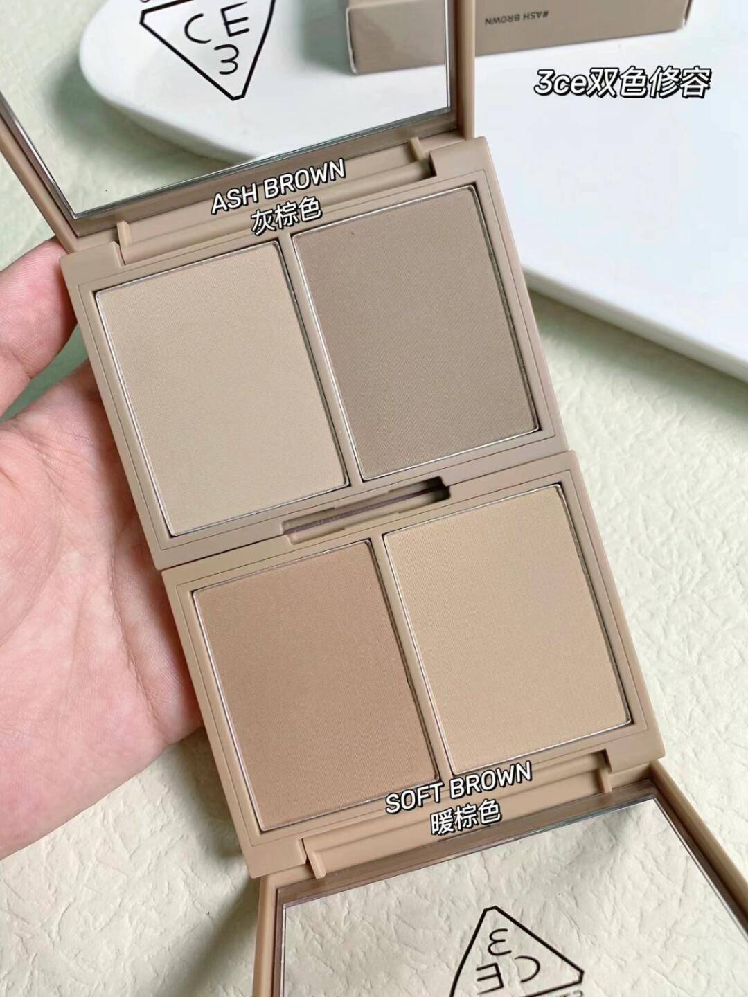 【 3CE Contour Shading 修容 】8.6g RM75 两盘适合新手宝宝的修容也可以说是傻瓜修容!😍😍 ✅低饱和 ✅粉质细腻软糯 ✅好晕染 🌸 Ash Brown(灰棕色) 适合肤色 - 白皮 / 黄皮 / 橄榄皮 🌸 Soft Brown(暖棕色) 适合肤色 - 黄黑皮 / 小麦肤色 使用方法: 拿起少量,轻轻敲击需要轮廓的区域