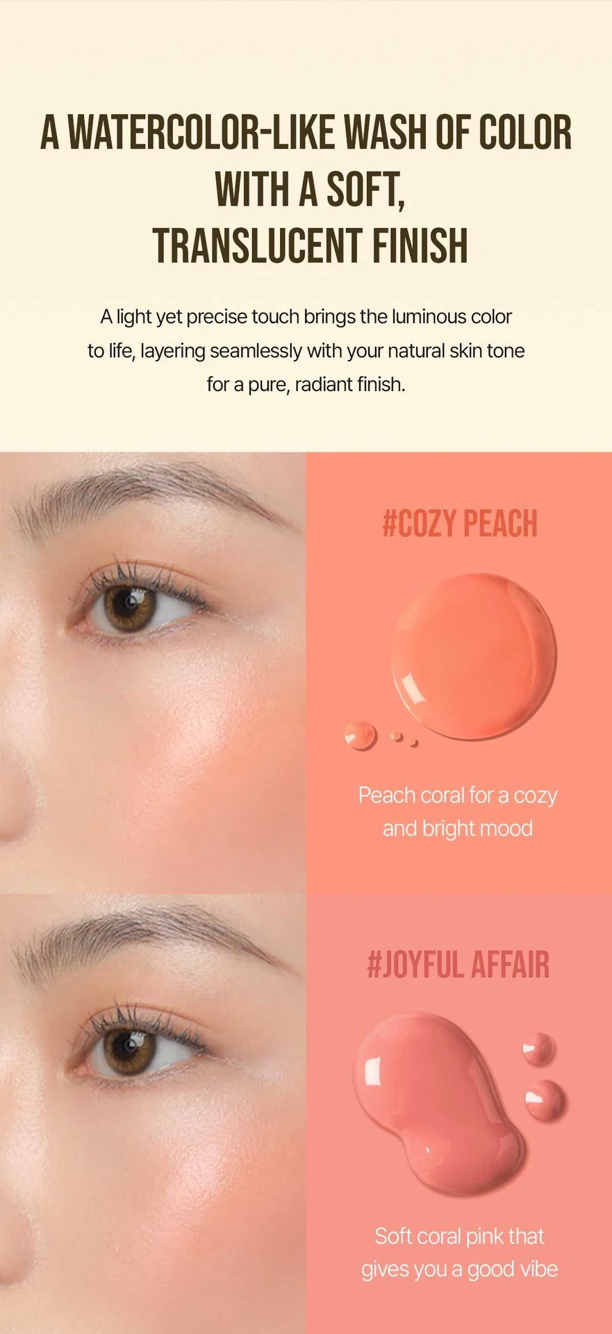 【 3CE Sheer Liquid Blusher 液体水光腮红 】3g RM59 这个系列是水光系列~涂上去是水光的! 很有光泽感水duang duang的很显嫩!😍😍 水光液体腮红,唇颊两用~延展性很好,只需一点点就可以在全脸晕开啦~是非常水的质地,揉开立马变雾! 🌸 Joyful Affair 柔和珊瑚粉 🌸 Cozy Peach 蜜桃珊瑚 🌸 Side Piece 香紫调粉色 日系伪素颜透明感妆容都适合 ❤️