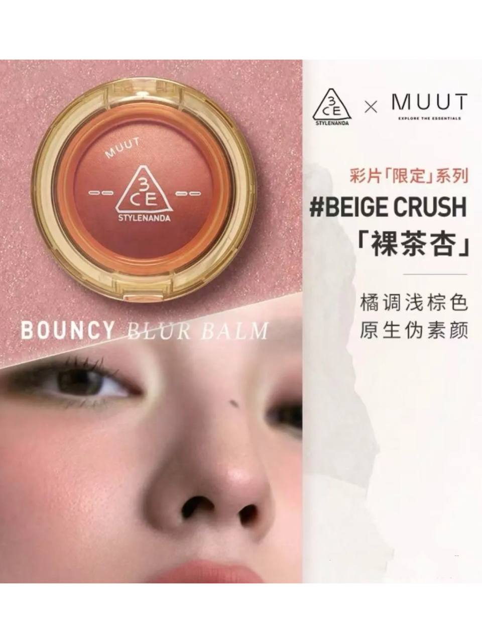 【 3CE x MUUT Bouncy Blur Balm 多用膏 】4.8g RM65 3CE新品像果冻般柔软的腮红,不仅可以用在脸颊还能当作眼影使用!带有淡淡的珠光轻松打造自然水光感妆效😍 小小一罐方便携带出门补妆超省心,而且性价比超高,新手也可以入手! 款式选择: 🌸 Fig Soda 无花果酱 显色度一级棒!用来画唇妆厚涂气场全开,薄涂又是俏皮少女感,秋冬必备的元气色! 🌸 Beige Crush 裸茶杏 颜色超级百搭涂在脸颊是自然的粉杏色,抹在唇上又是个温柔的裸妆感,日常通勤必备! 🌸 Pink Petal 木质粉 色号偏冷调用来打眼影绝了!轻轻一抹就能打造出高级感十足的雾面妆效,完全不会结块!