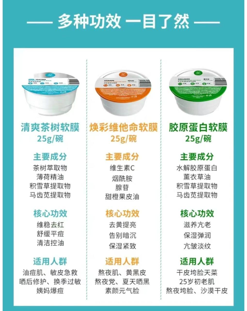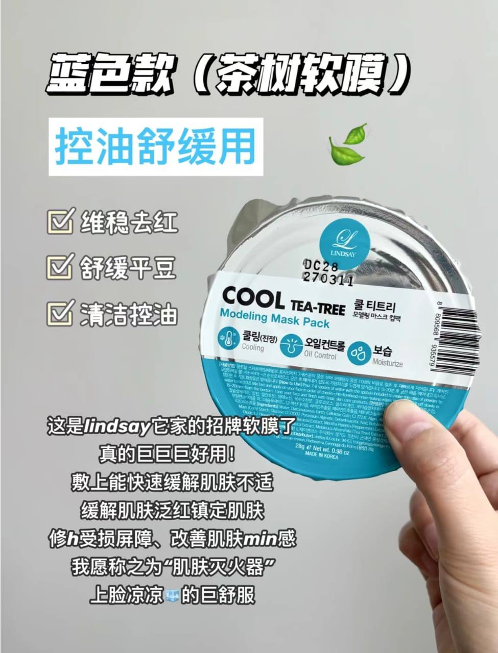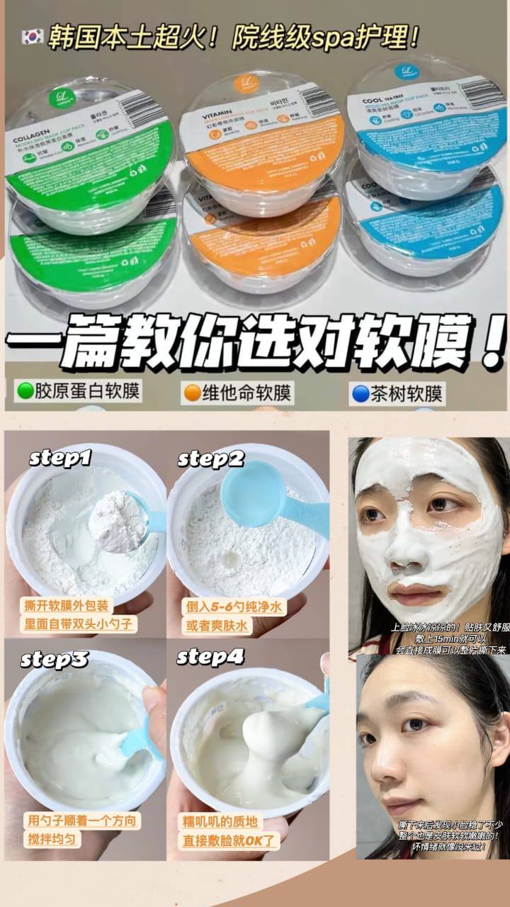 【Lindsay 软膜粉】rm25 美容师推荐‼️在家自己做spa 💆🏻♀️比那种膜布面膜好用太多 谁懂啊~ 院线同款软膜!来自韩国lindsay品牌 💙茶树软膜 适合「油痘肌 油敏肌」,皮肤灭火器 皮肤有什么小情绪都能即时安抚下来 还能舒缓控油,敷完感觉脸蛋舒服很多 💚胶原蛋白软膜 适合「干皮 松弛肌」 抗初老,紧致饱满肌肤,深层锁水保湿 🧡维他命软膜 适合「黑黄皮 熬夜党」 去黄提亮效果简直惊到我 面膜揭下来那一刻,感觉脸蛋由内到外透着光 嫩肤效果简直太🉑了 它是碗状的次抛设计,一次用一碗 平时出门携带也很方便 使用时直接和纯净水1:1混合 搅拌均匀后直接上脸就可以了 上脸巨舒服,冰冰凉凉的,丝毫不滴液 敷15分钟左右就可以揭掉了 撕下软膜后用清水冲洗干净 就可以进行后续的护肤了👌🏻 赶快PM我们下单吧📲📲