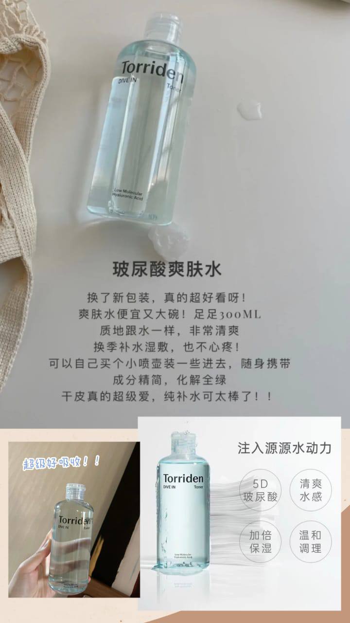 【 Torriden 玻尿酸爽肤水】(500ml + 60棉片)RM99🔥🔥 市面上玻尿酸产品真的很多,但 Torriden做到了真正的渗透补水✨5D玻尿酸配方 直达肌肤底层的补水质地的蓝色是孔雀石提取物~ 产品特点: 🌸舒缓肌肤 🌸滋润补水 🌸调理角质 🌸清爽温和 🌸修复肌肤屏障 ✅肌肤敏感的朋友也可以使用✨ ✅流动性超强,像水一样的质地,便宜大碗,也是非常适合湿敷的,在皮肤状态不好的时候敷个5分钟,能够让肌肤喝饱了水! 赶快PM我们下单📲📲