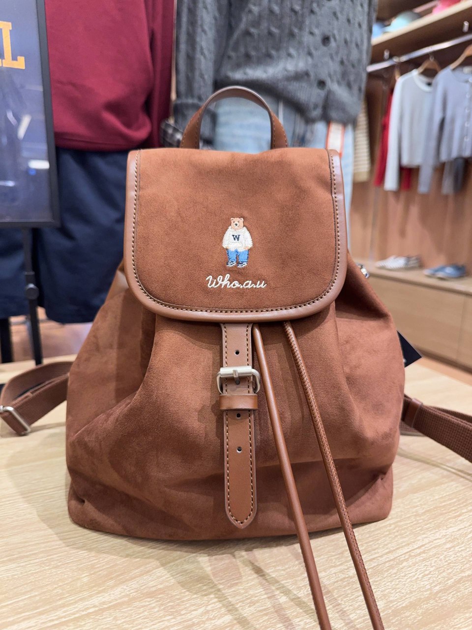 🇰🇷Whoau 绒布后背包 RM169 主打小熊设计 时尚又好看呀 韩国超热门的品牌~ 高*长*宽 30*25*14cm 🇰🇷韩国代购中 赶快PM我们下单📲