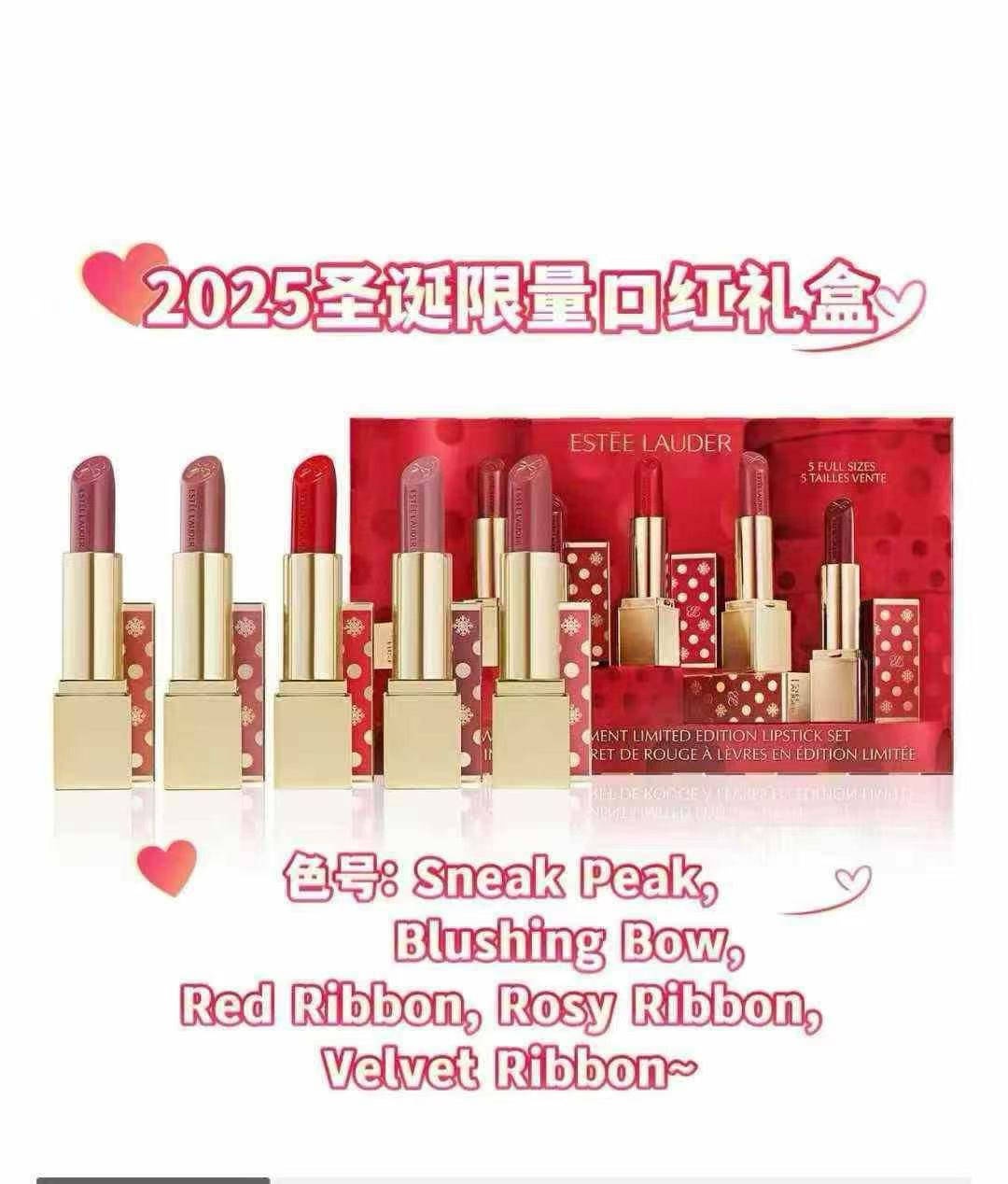 一年只出一次 卖完无补‼️‼️‼️ 💗🎀雅诗兰黛2025 圣诞口红礼盒 送礼自用,仪式感满分! 无论是送给闺蜜当圣诞惊喜, 这套口红都是不会出错的选择 限量包装+实用色号,辛芷蕾同款的口红,女王的气场 色号: Sneak Peak, Blushing Bow, Red Ribbon, Rosy Ribbon, Velvet Ribbon~全部正装 一盒五支正装 Rm220 一支都不到50 还是限量包装 超级划算✨ 🇺🇸美国正品亲自代购 赶快PM我们下单📲