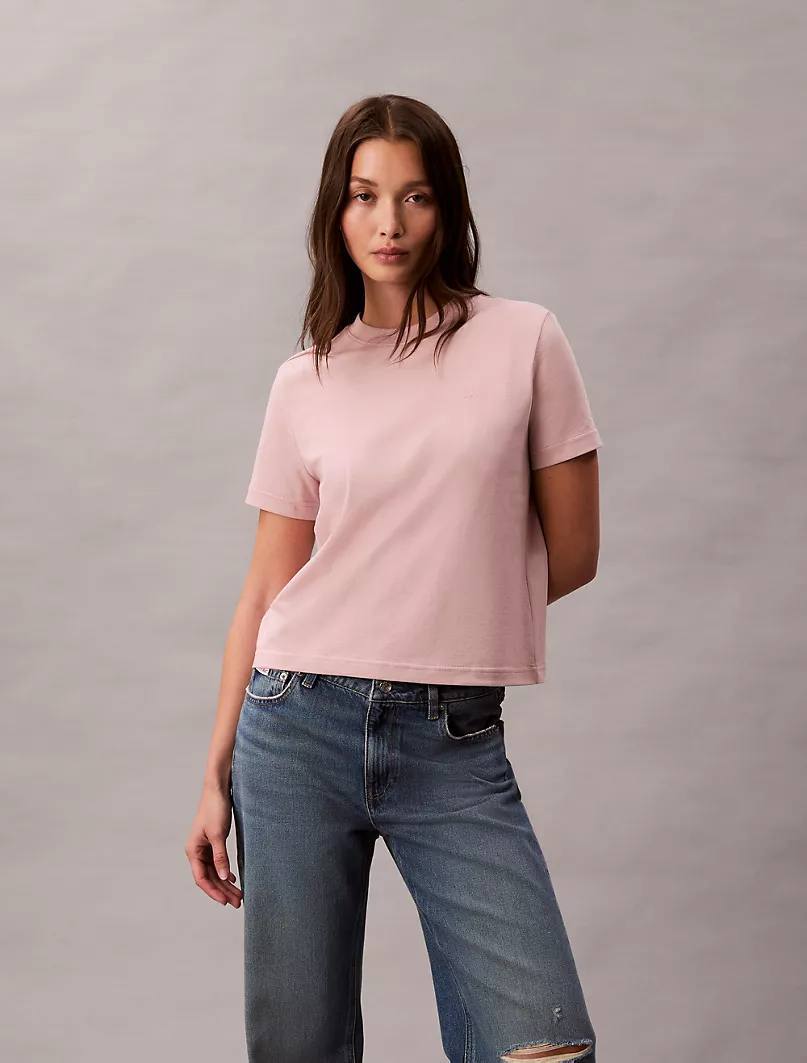 Ck 女款经典Tee Rm169 这两款 是他们的热销款 版型是比较厚实的 圆领 宽松纯色系的 logo是刺绣的 所以穿起来 简单搭配 就很显态度👍 这绝对是一款你 会不断重复穿的款式 size XS-XL