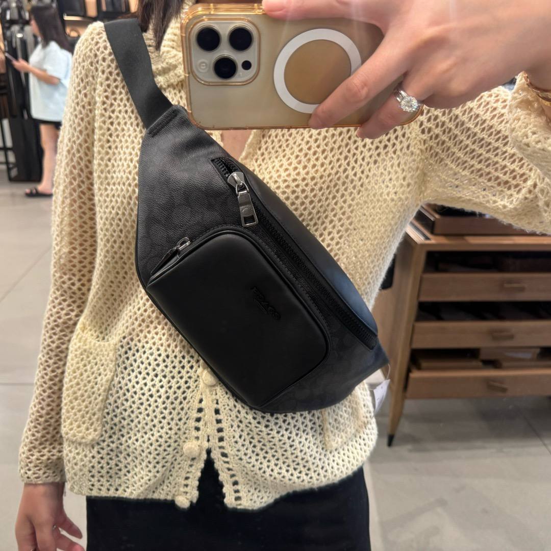 🇺🇸Coach男士经典款大号胸包腰包 新版暗标款,前面带口袋款,一包多用,牛皮质感超好,前后都有拉链,非常实用!简单经典万年不过时! 黑五 限时折扣 Rm699‼️‼️ 🇺🇸美国正品亲自代购 赶快PM我们下单📲