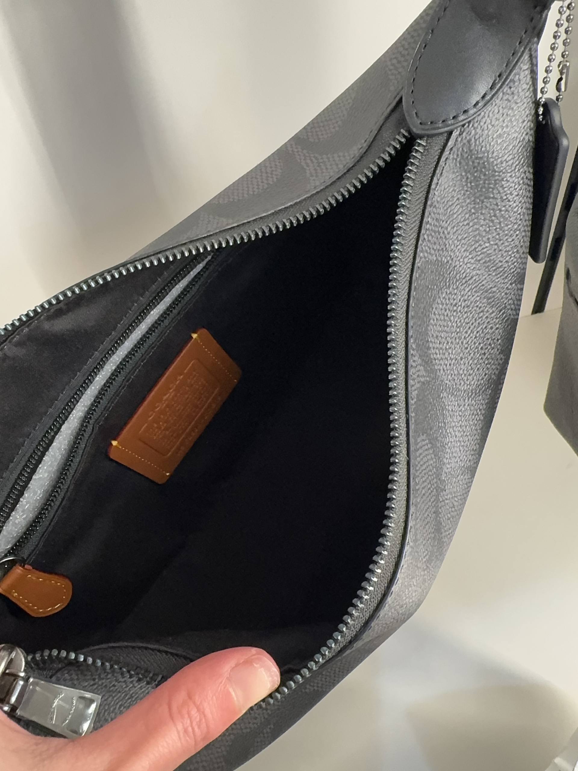 Coach 新品!男款牛角斜挎包🔥 黑五打折 只需RM890 简约又时髦!饺子包造型,尺寸约32×24x10cm,肩带可调节,通勤休闲都OK。全拉链设计超安全,内部空间大,日常物品轻松装下,还附小挂件收纳耳机钥匙等小物、。轻便耐用,百搭不挑人,是男士出街必备实用单品 🇺🇸美国正品亲自代购 赶快PM我们下单🛒📲