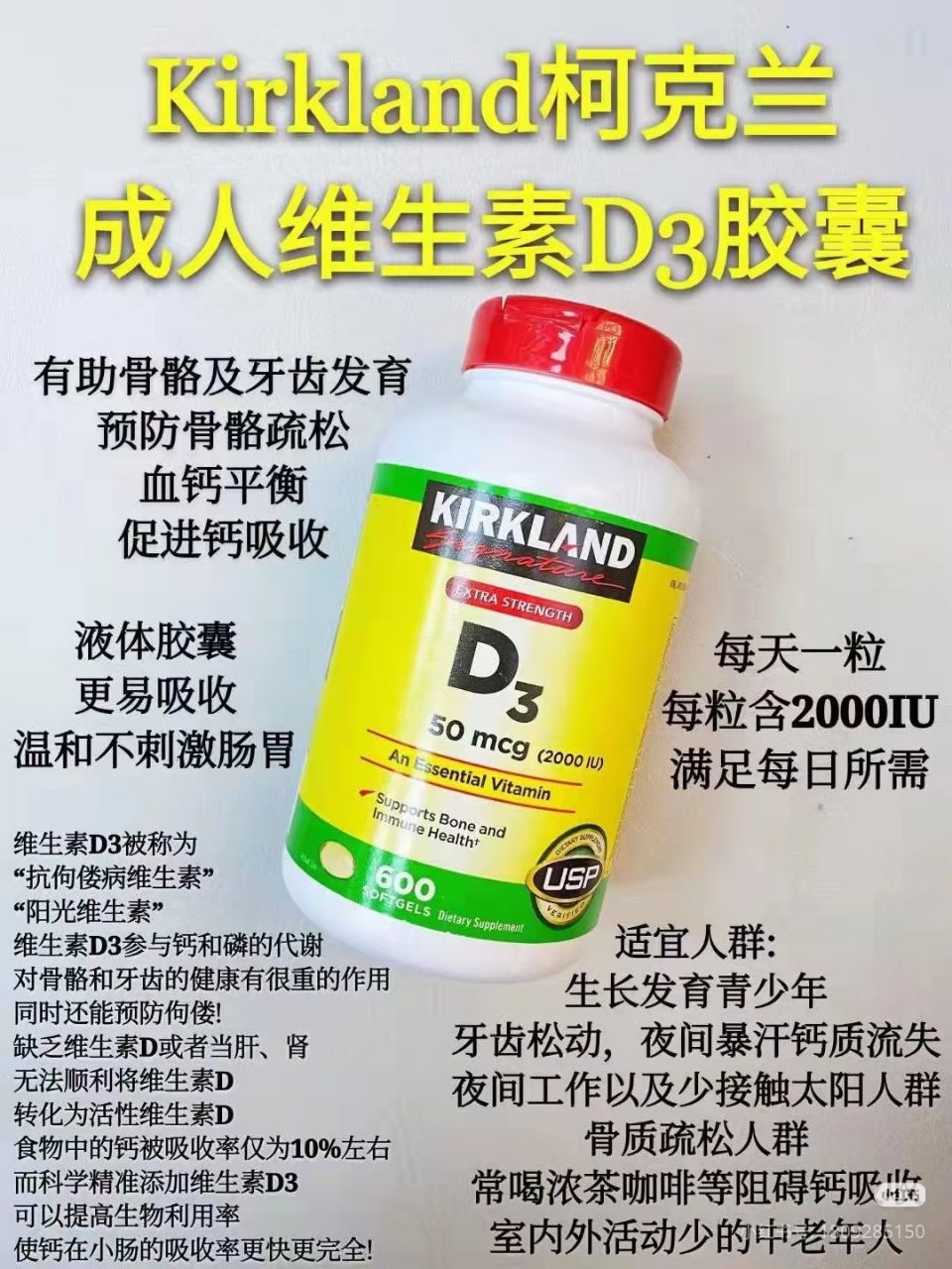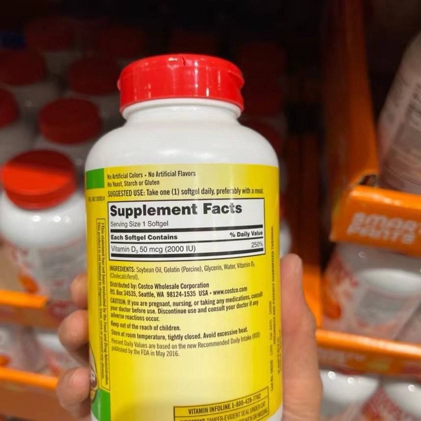 🇺🇸Kirkland VITAMIN D3 柯克兰维生素D3 2000IU 600粒,Rm130✅ 好大一瓶!提高肌体对钙,磷的吸收,促进牙齿健全,提高身体防御力。🈚人工色,🈚人工香料,🈚酵母和淀粉。在美国,到了40岁,医生会建议开始补充D3,说可以延缓更年期 ✅ 促进钙吸收、增·强免·疫力🌞,尤其适合经常宅家或日照不足的宝子 🇺🇸美国代购中 赶快PM我们下单询问📲📲