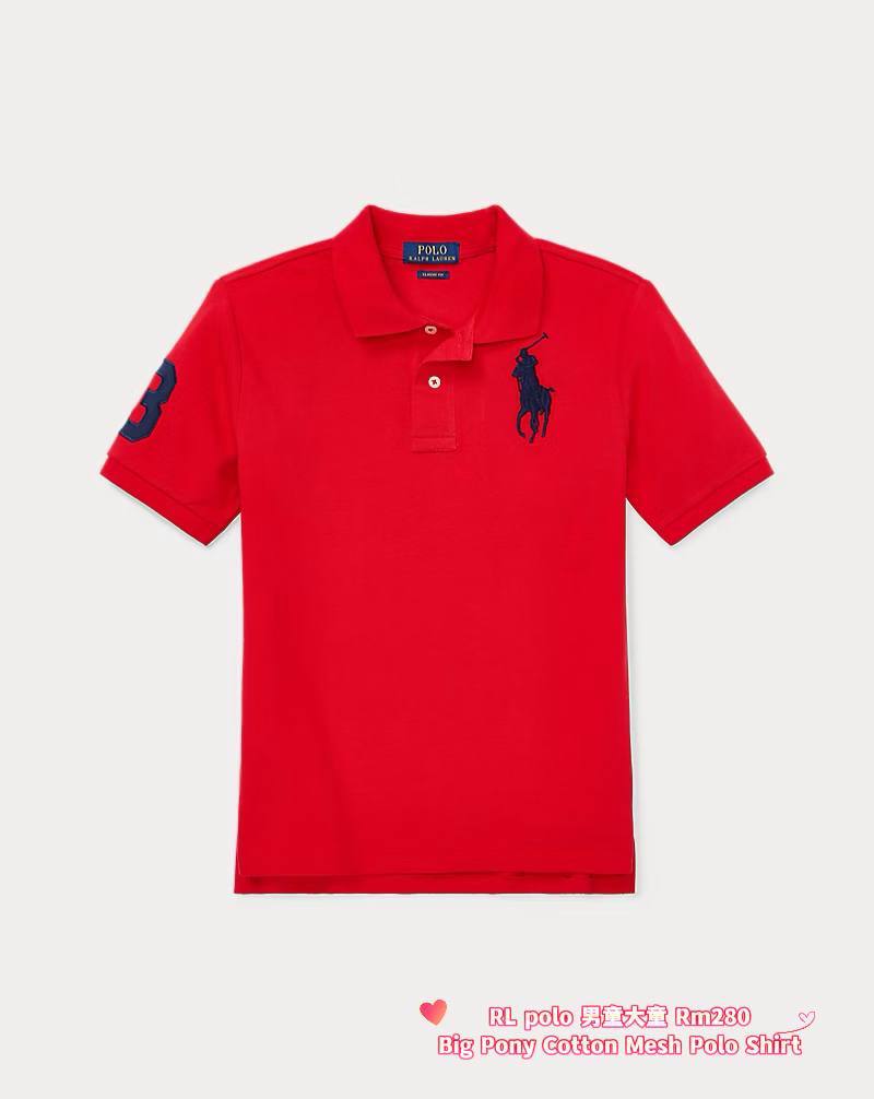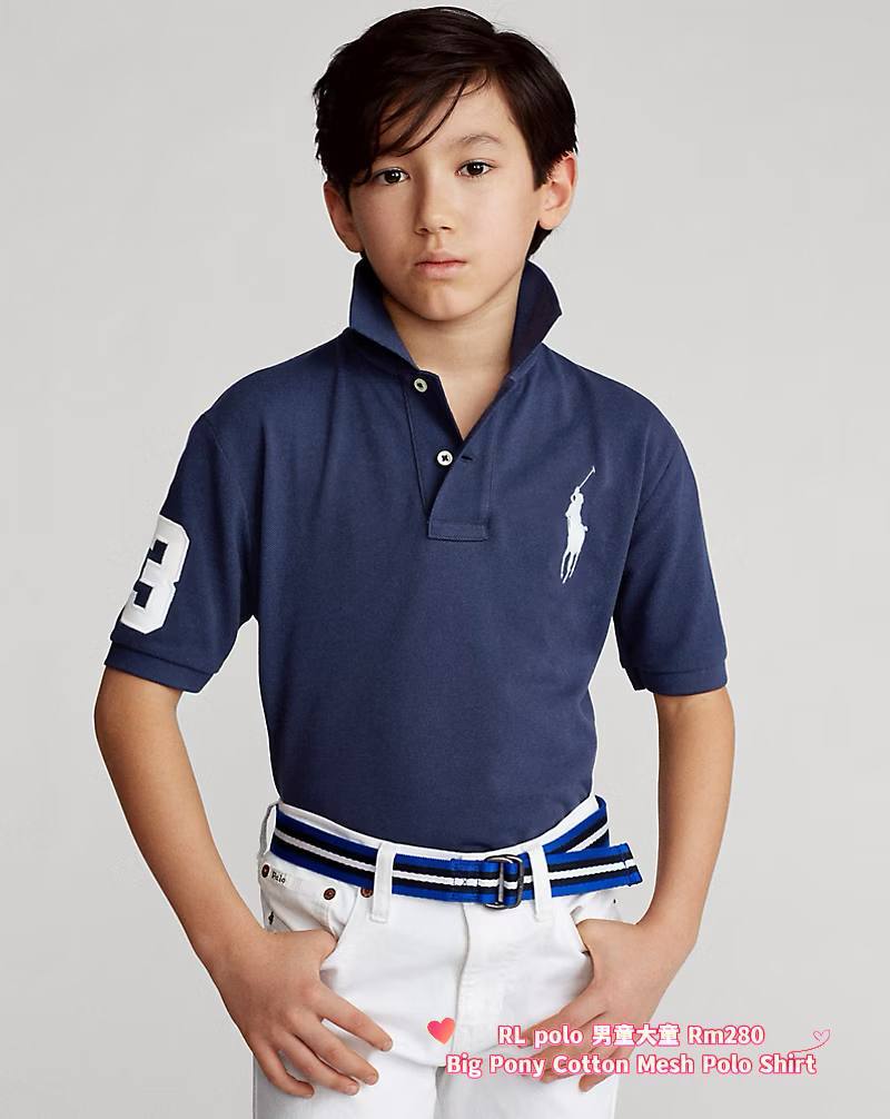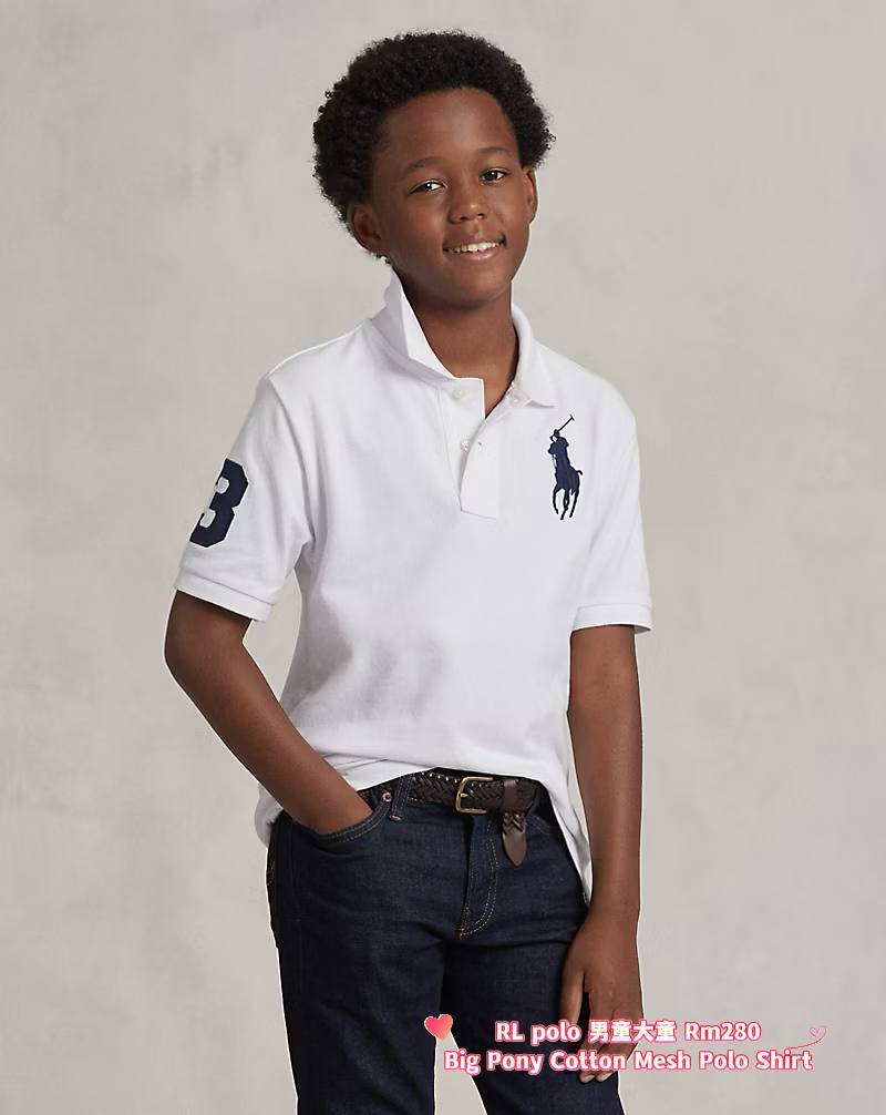RL polo 男童大童 Rm280 Big Pony Cotton Mesh Polo Shirt Cutting很大,大人尺寸参考✅ 175cm 70kg 穿XL 性价比超高
