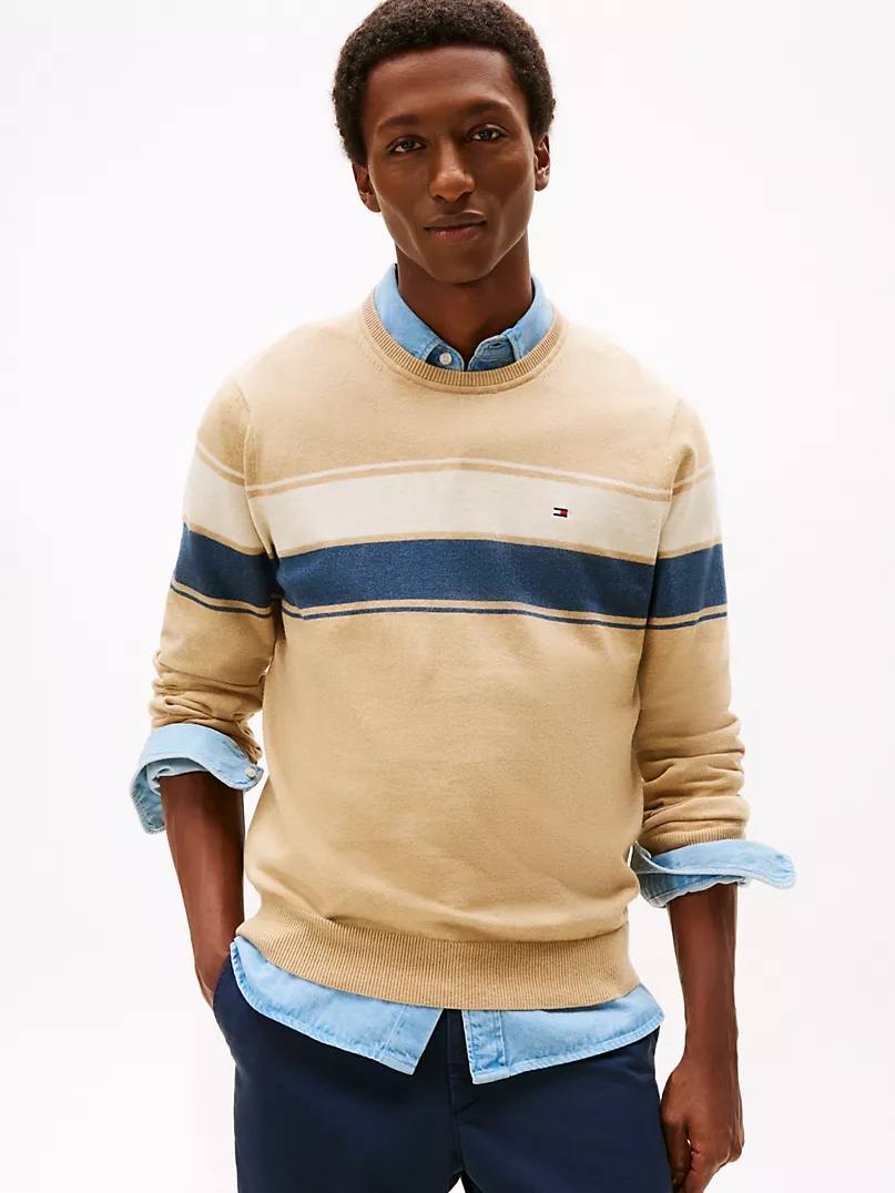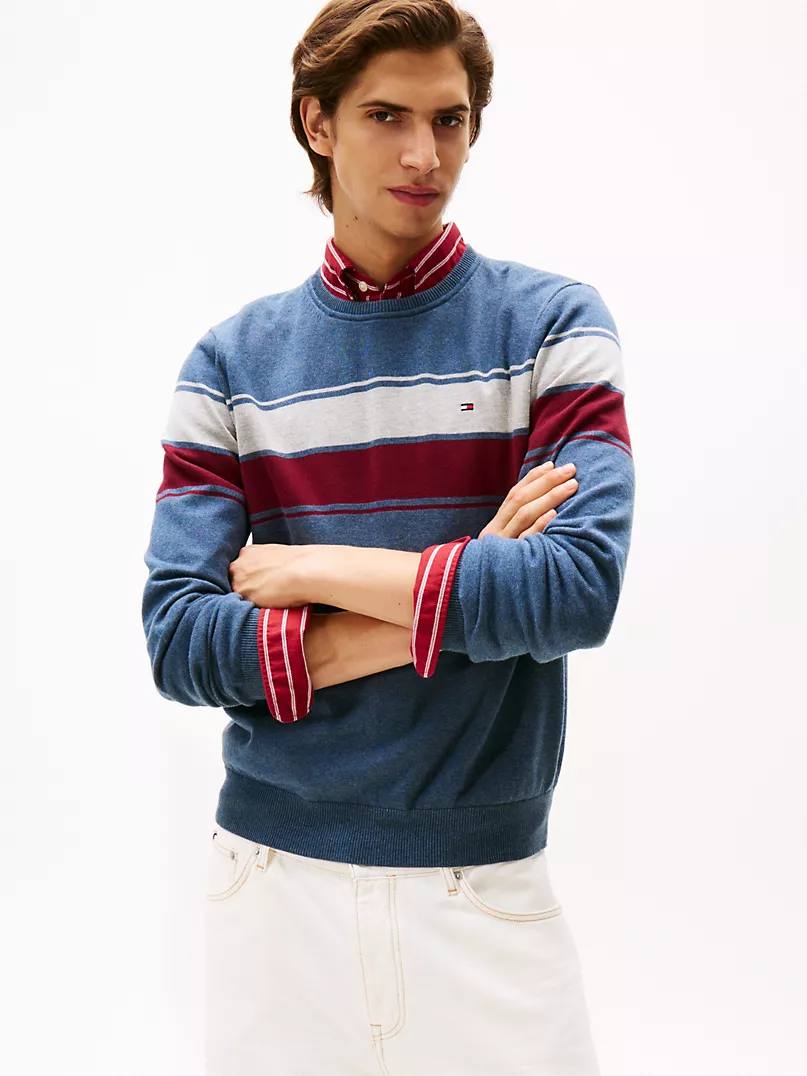 🇺🇸TOMMY 男款秋冬圆领头套条纹针织衫
