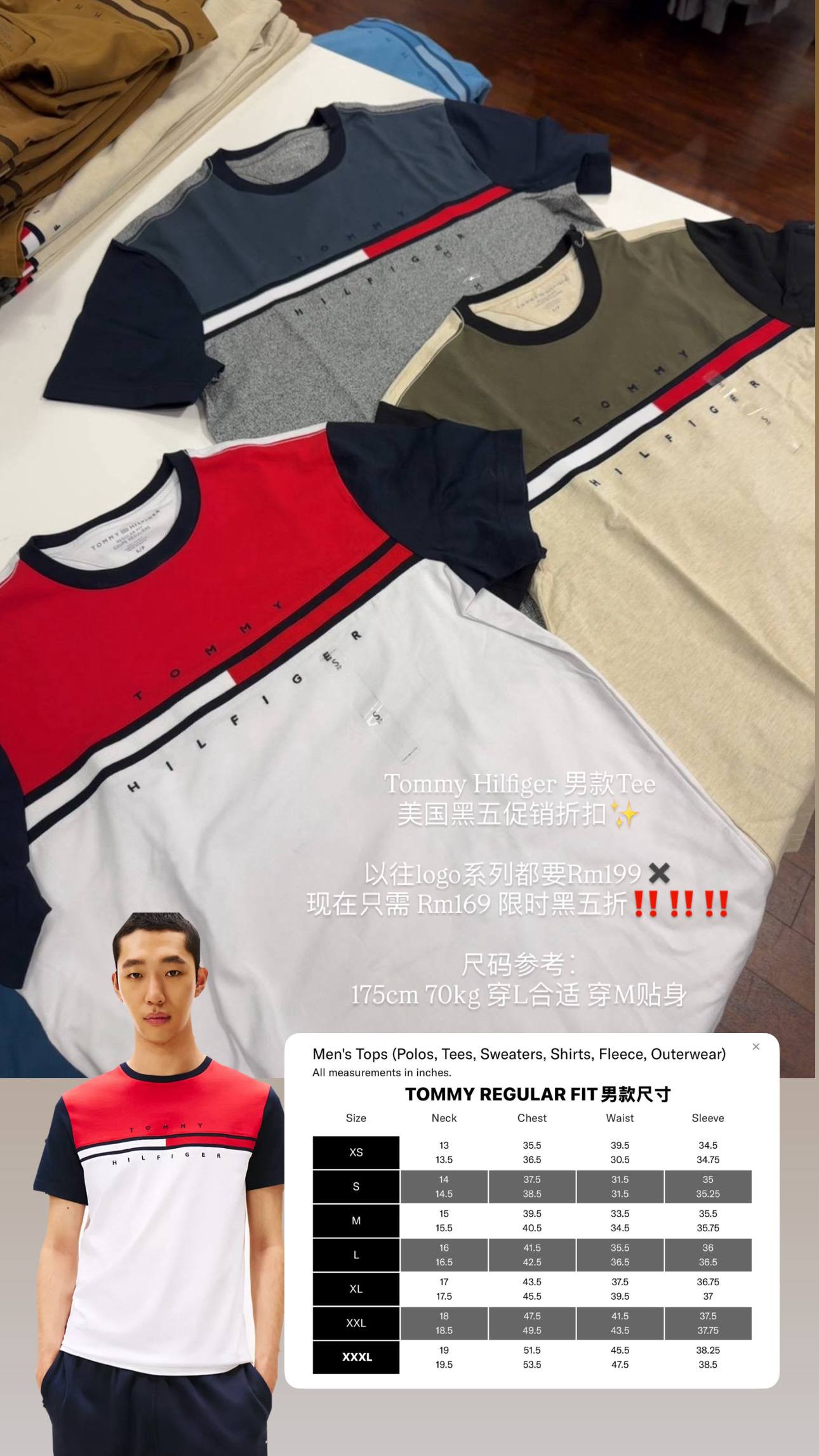 Tommy Hilfiger 男款Tee 美国黑五促销折扣✨ 经典永不过时 越穿越好舒服 正品保证 100%cotton 亲自购买 好的品质 可以穿很久 日常 逛街都能 这次添加多款颜色 选择 因为热卖 所以 才不断更新 新颜色🌹🌹🌹 以往logo系列都要Rm199✖️ 现在只需 Rm169 限时黑五折‼️‼️‼️ 尺码参考∶ 175cm 70kg 穿L合适 穿M贴身 🇺🇸美国正品亲自代购 赶快PM我们下单📲