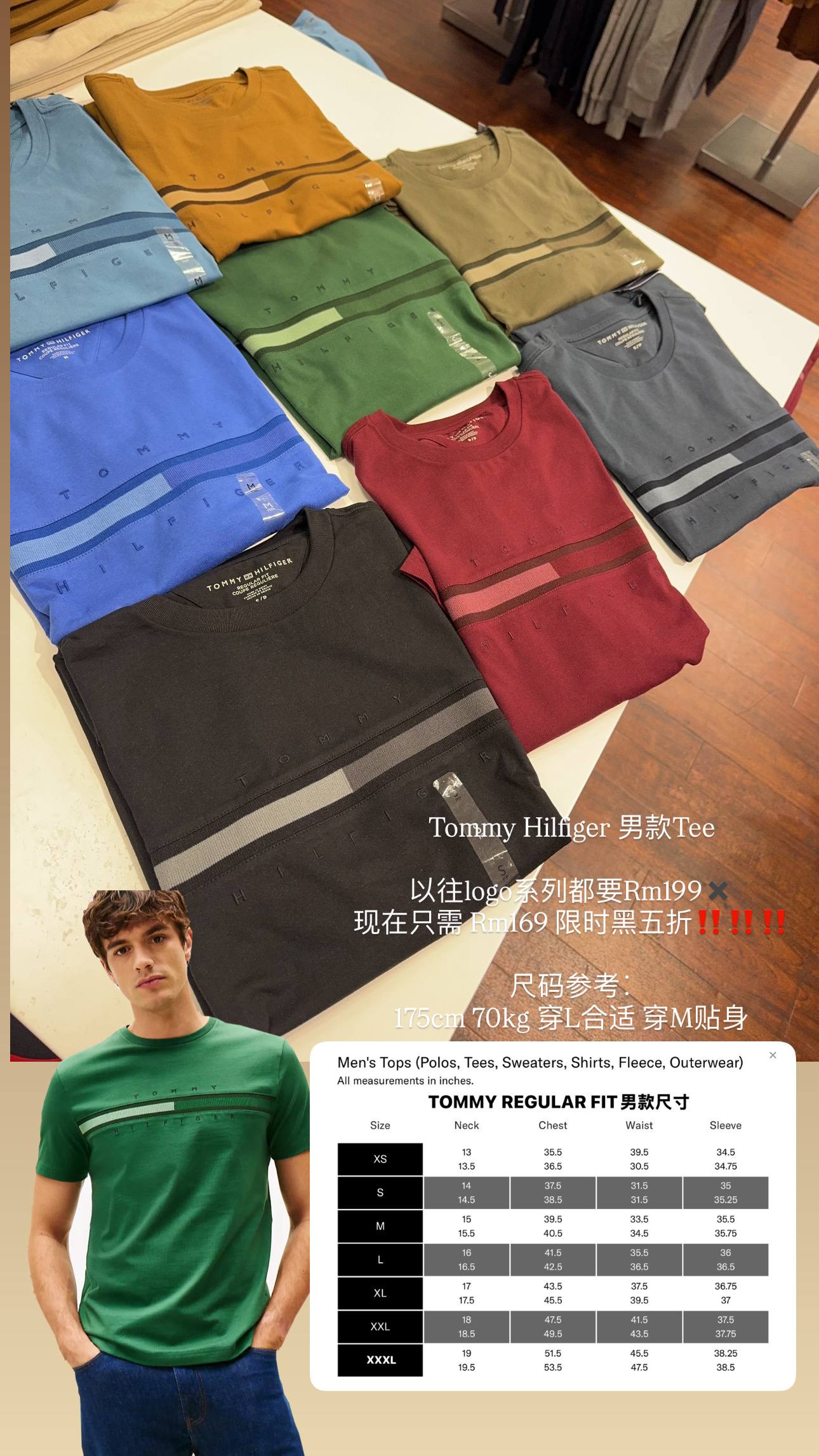 Tommy Hilfiger 男款Tee 美国黑五促销折扣✨ 经典永不过时 越穿越好舒服 正品保证 100%cotton 亲自购买 好的品质 可以穿很久 日常 逛街都能 这次添加多款颜色 选择 因为热卖 所以 才不断更新 新颜色🌹🌹🌹 以往logo系列都要Rm199✖️ 现在只需 Rm169 限时黑五折‼️‼️‼️ 尺码参考∶ 175cm 70kg 穿L合适 穿M贴身 🇺🇸美国正品亲自代购 赶快PM我们下单📲