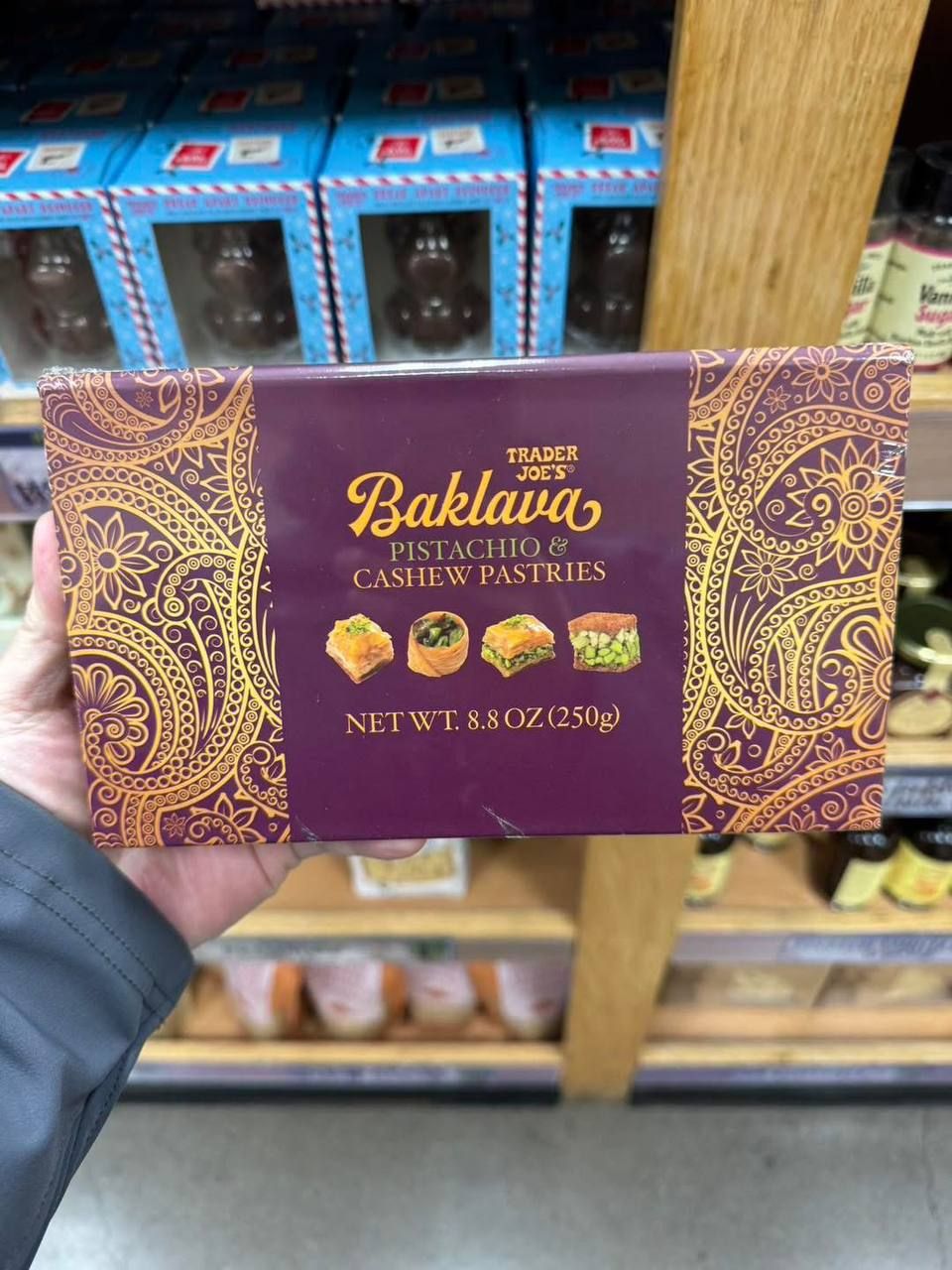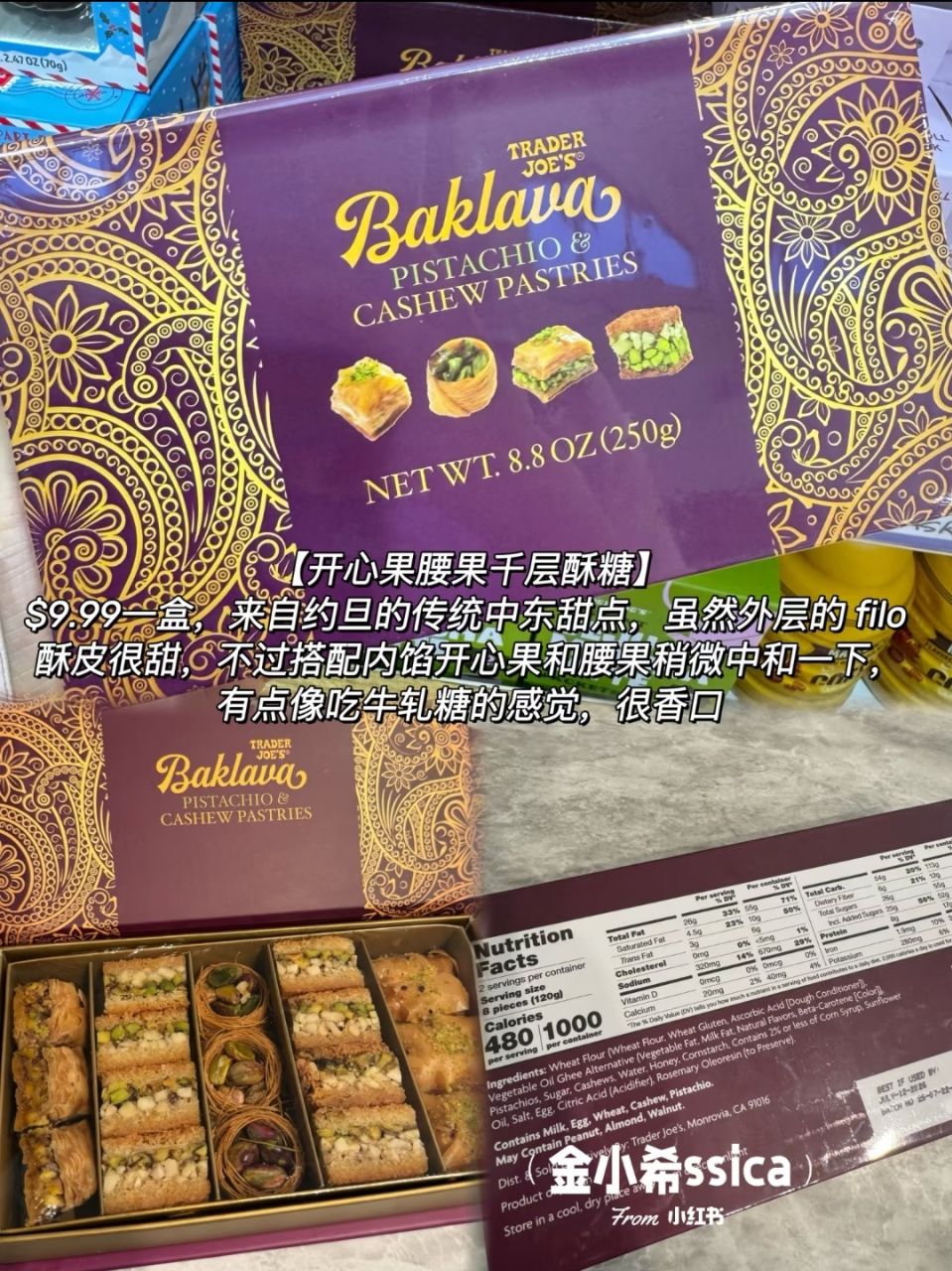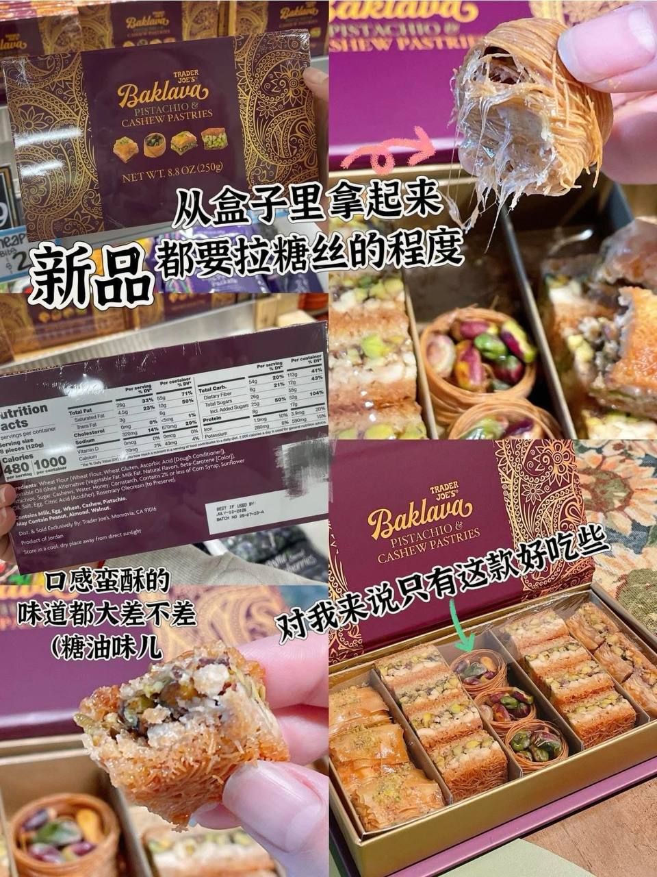 🇺🇸Trader Joe’s 美国有机超市 开心果与腰果果仁蜜饼 这款点心是用层层酥脆的酥皮制成,内馅包含开心果和腰果,并浸泡在蜂蜜糖浆中。 果仁蜜饼是中东地区著名的甜点,很适合搭配热茶或作为饭后甜点😋 Rm89✅ 🇺🇸美国正品亲自代购 赶快PM 我们下单🛒📲