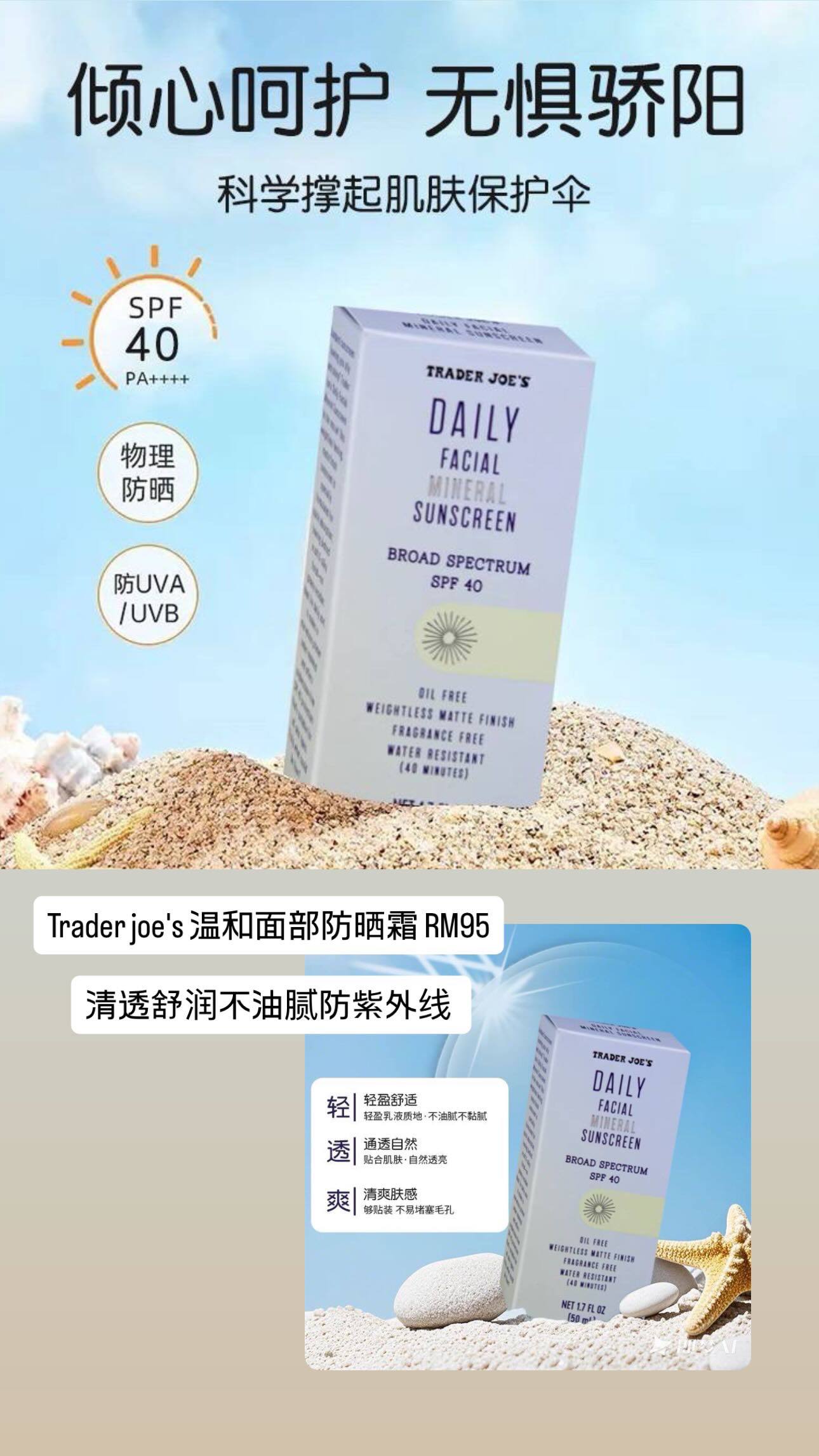 🇺🇸TraderJoe's 温和面部防晒霜 RM95