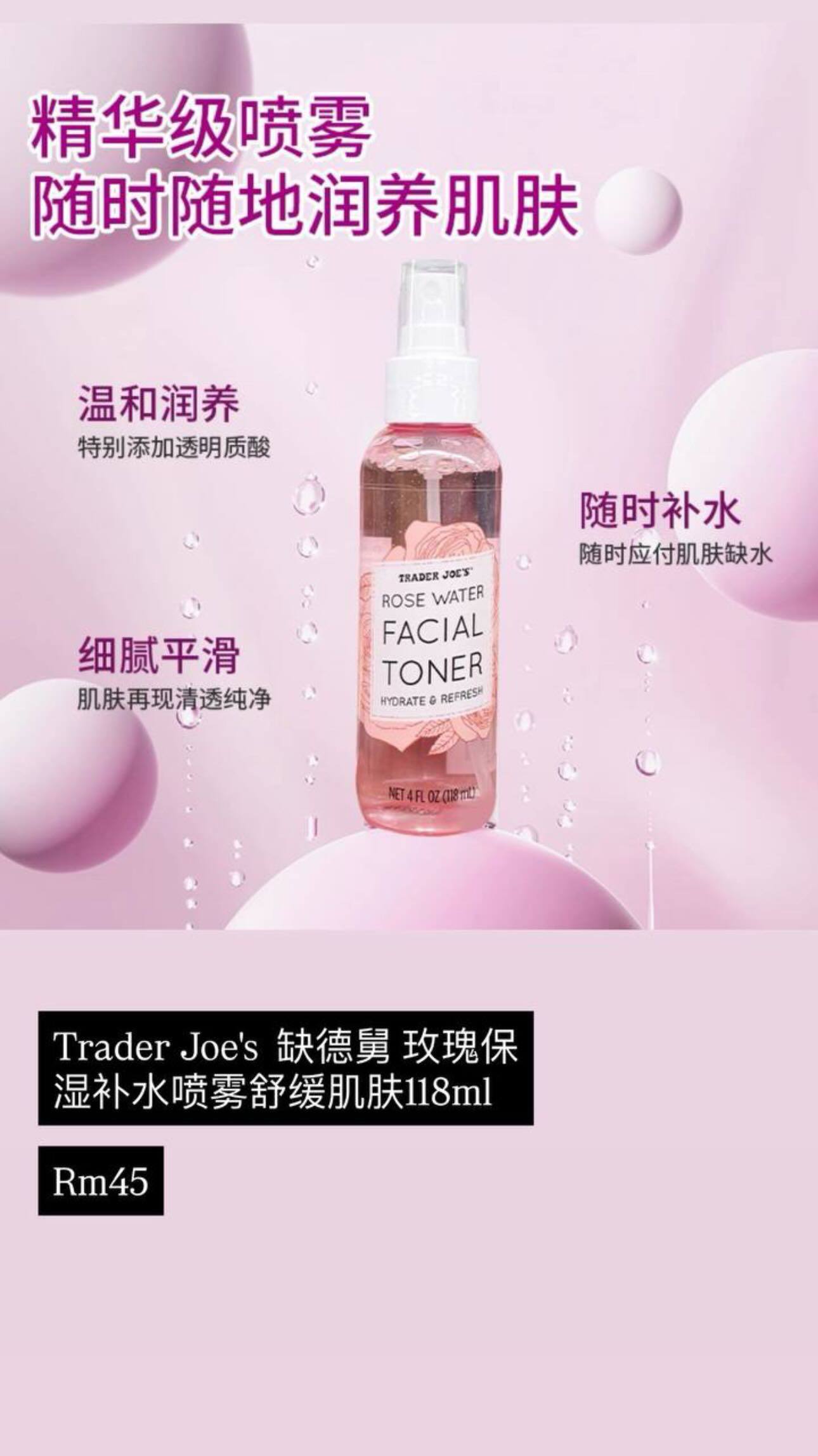 🇺🇸TraderJoe's 玫瑰保湿补水喷雾舒缓肌肤 118ml RM45