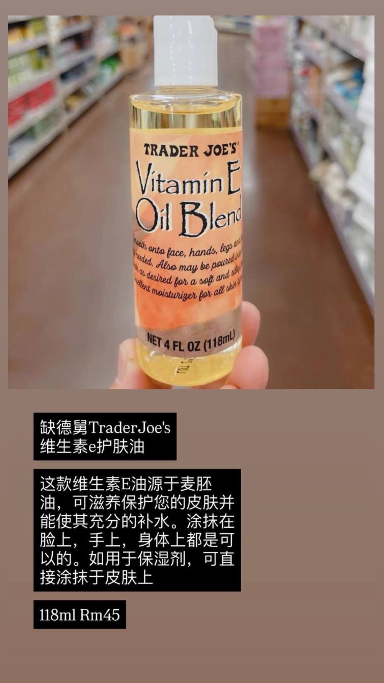 🇺🇸TraderJoe's 维生素e护肤油 118ml RM45