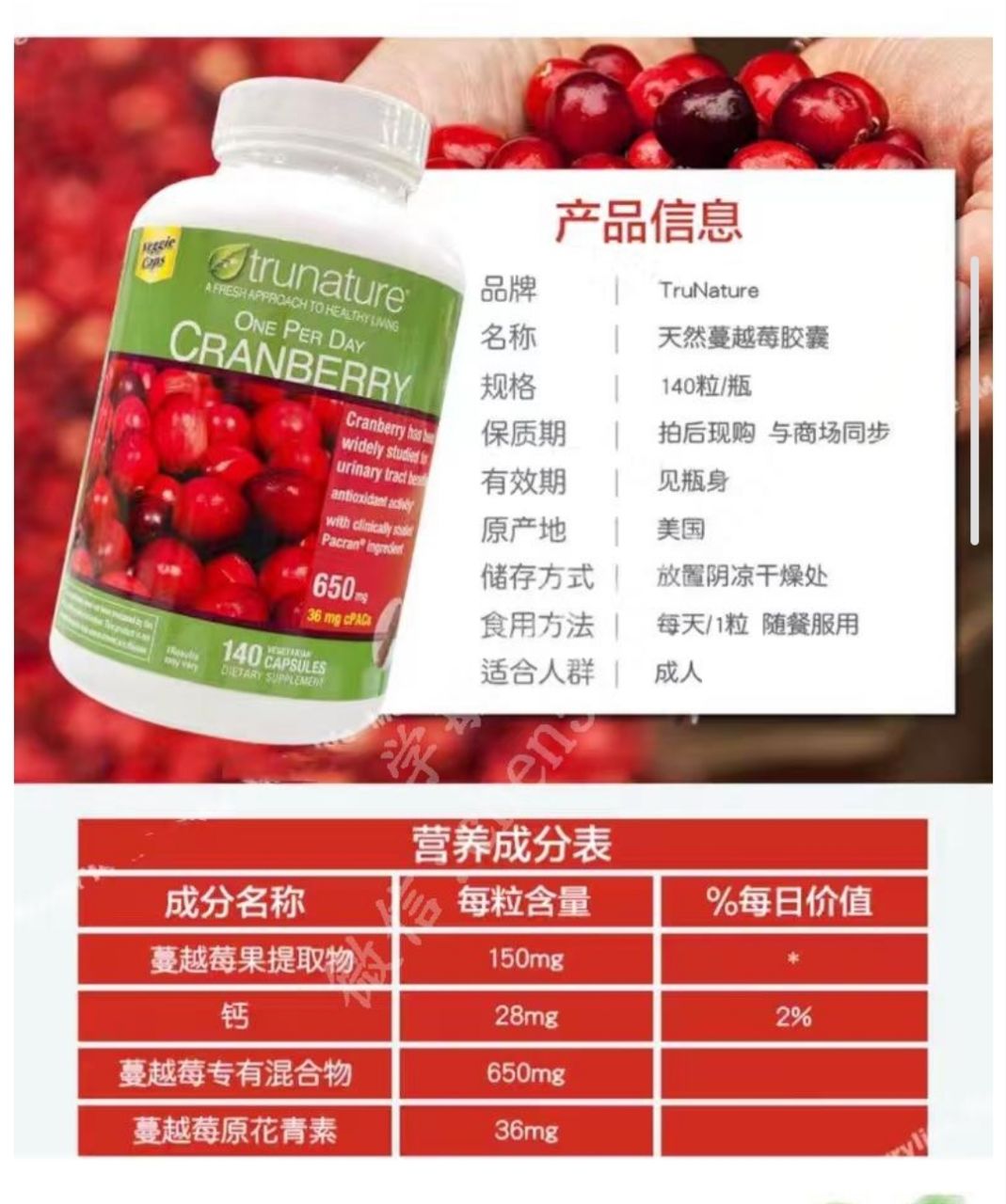 🇺🇸Trunature 蔓越莓胶囊❤️ RM160✅ 浓缩650mg/粒 ,一瓶140粒吃140天 原产自北美的蔓越梅高浓度精华 专门针对女性泌尿系统问题!预防妇科炎症、泌尿系统感染、白带异常、经期不适等妇科病,反馈非常好,有妇科问题困扰的妹子们可以试试,没有问题的可以作为日常保健。新包装含量更高👍🏻 天然植物🌱精华,不含抗生素。准备要宝宝前不方便吃药,也可以吃它调节酸碱性。能对抗细菌的黏附特性,对胃炎也有功效 🇺🇸美国代购中 赶快PM我们下单询问📲📲