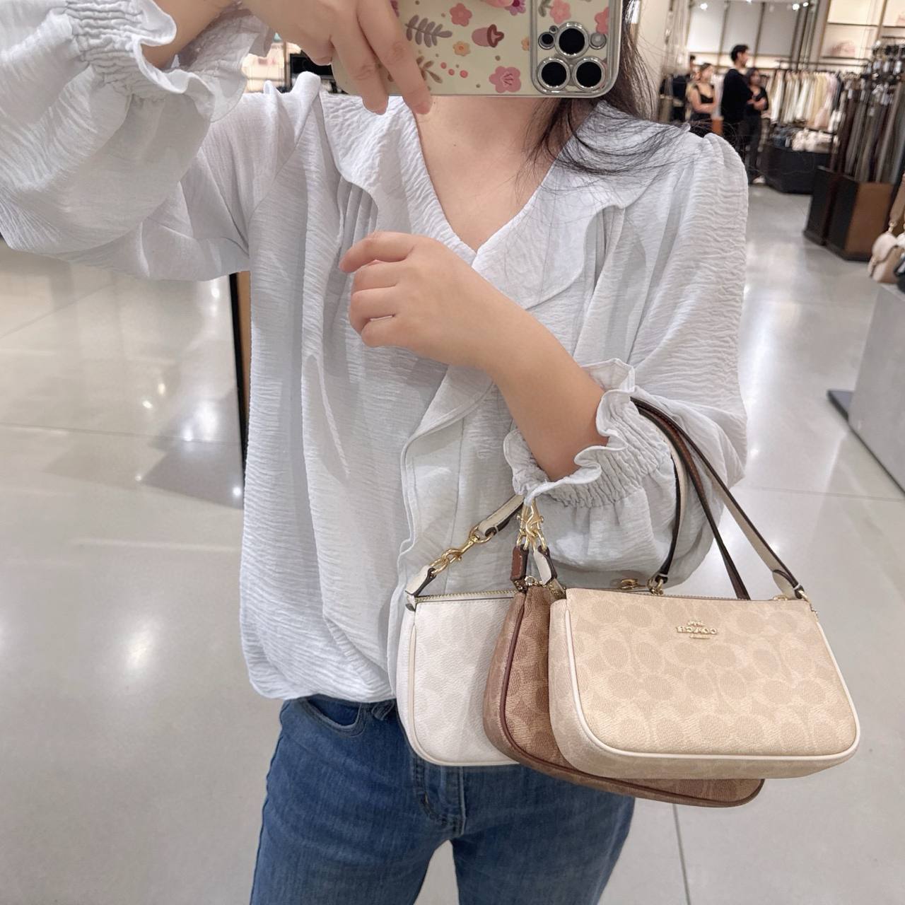 🇺🇸coach麻将包 RM490✅ 香草白和沙色奶茶 包小容量大,可以放下大手机/钥匙、钱包、口红,好用又方便,自己DIY搭配链条还可以当斜挎包!可以接一根珍珠链当肩背包,可以配一个链条当斜挎包😍😍 尺寸19*11cm 🇺🇸美国代购中 赶快PM我们下单询问📲📲