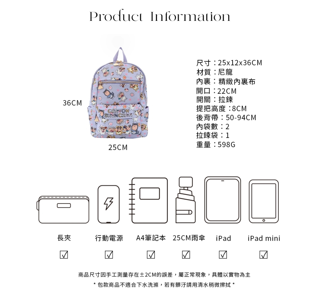 🇼🇸天蓝小舖-蜡笔小新俏皮萌兽尼龙后背包 RM109 🌷西马包邮 ✅正版授权,包拉链开口有内裡 ✅内有2暗袋及1拉链袋,加厚暗袋夹层可放平板电脑 ✅包前有2拉链袋,包后1拉链袋 ✅包两侧皆有口袋,后背带可调整长度 🇼🇸台湾代购中 赶快PM我们下单吧
