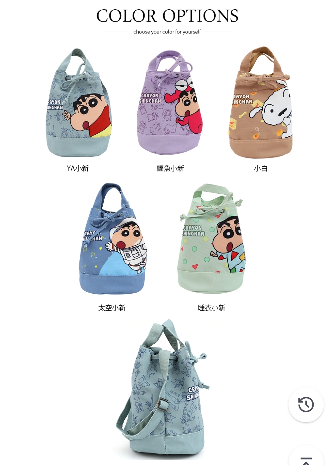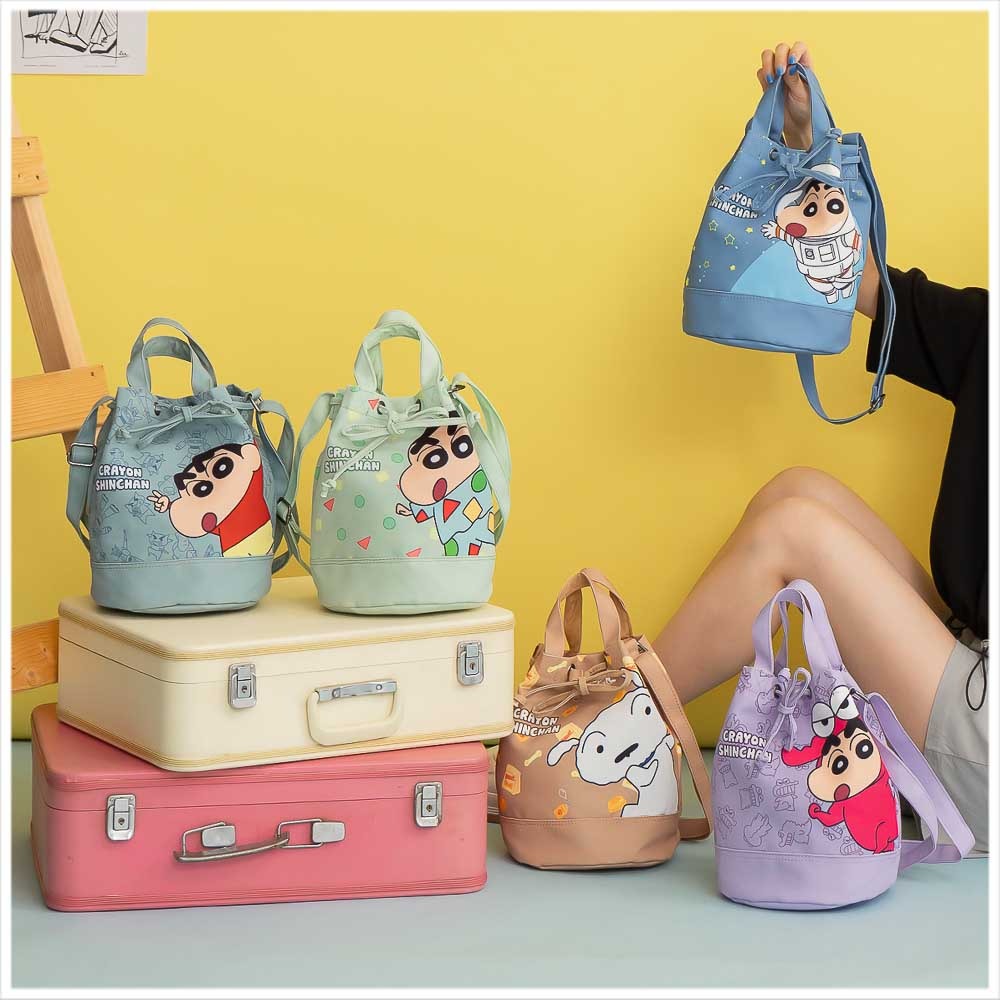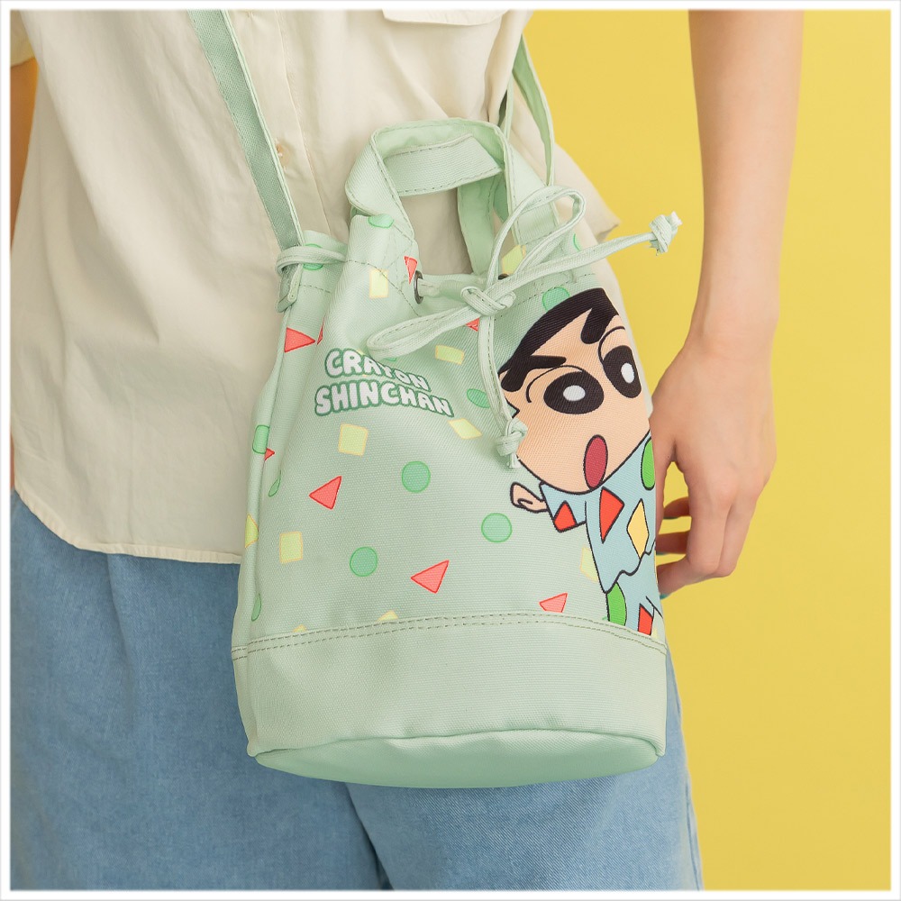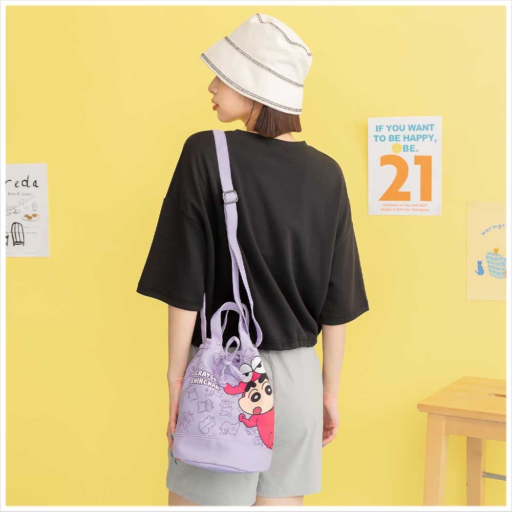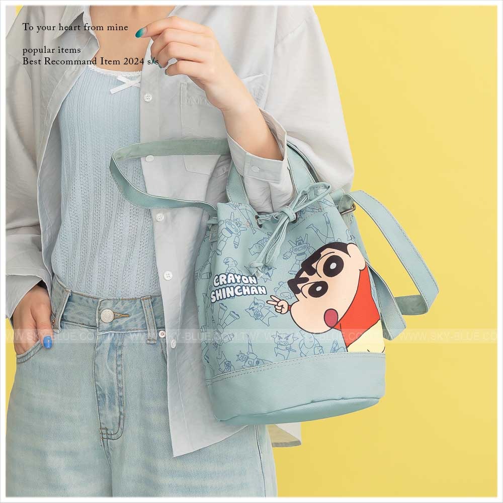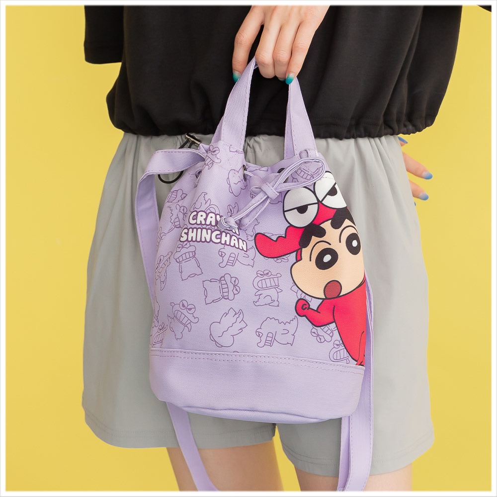 🇼🇸天蓝小舖-蜡笔小新俏皮角色束口手提/斜背水桶包
