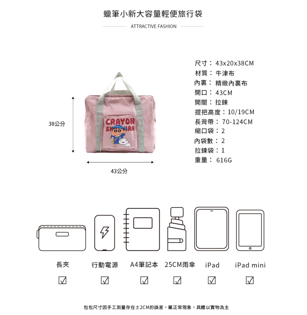 🇼🇸天蓝小舖-蜡笔小新大容量轻便旅行袋 RM109 🌷西马包邮 ✅正版授权 ✅包拉鍊开口有内裡 ✅内有1个拉鍊袋及2个暗袋 ✅两侧有缩口袋 ✅包前1个拉鍊立体袋 ✅包后有行李插釦及1个拉鍊袋 🇼🇸台湾代购中 赶快PM我们下单吧