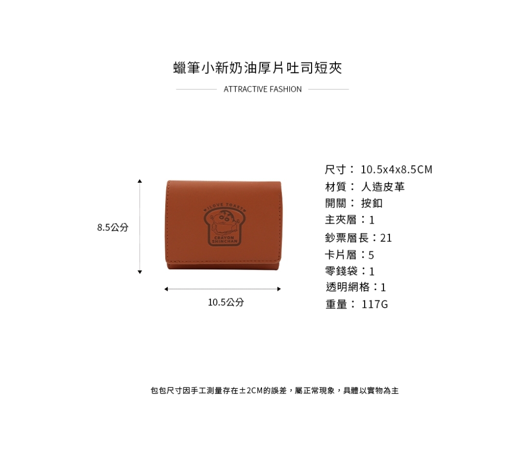 🇼🇸天蓝小舖-蜡笔小新奶油厚片吐司短夹 RM109 🌷西马包邮 ✅正版授权 皮夹按釦开口设计有内裡 ✅内有1个钞票主夹层、5个卡片层 ✅2个小格层,1个透明层、1个拉鍊零钱袋 🇼🇸台湾代购中 赶快PM我们下单吧