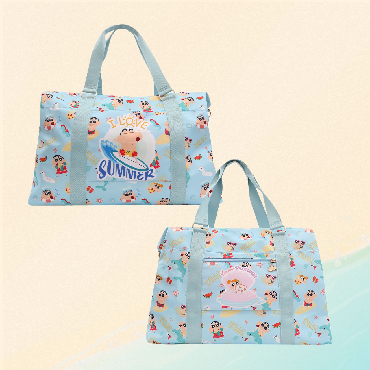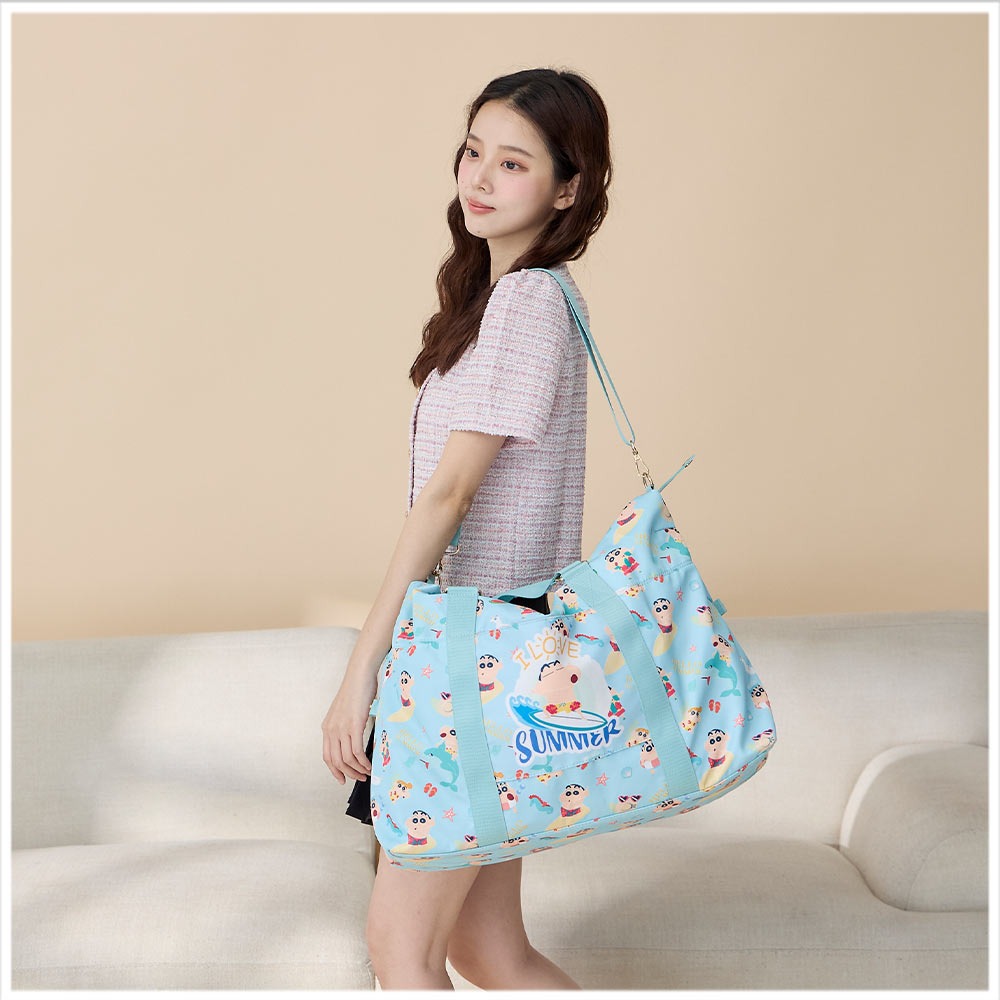 🇼🇸天蓝小舖-蜡笔小新缤纷夏日尼龙侧扣旅行袋