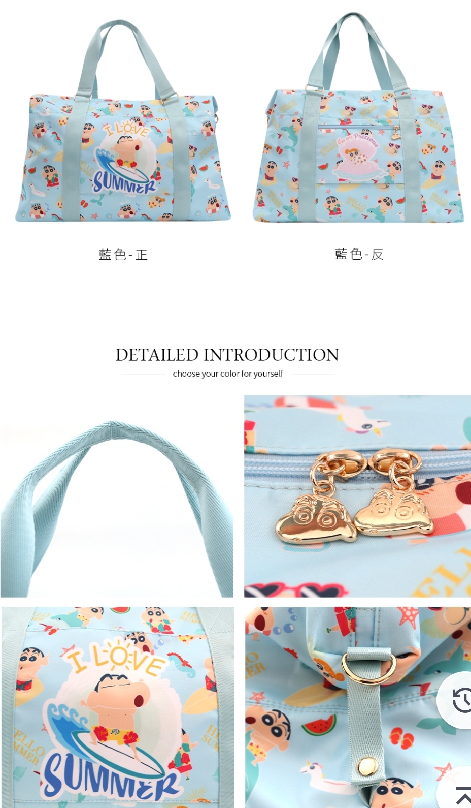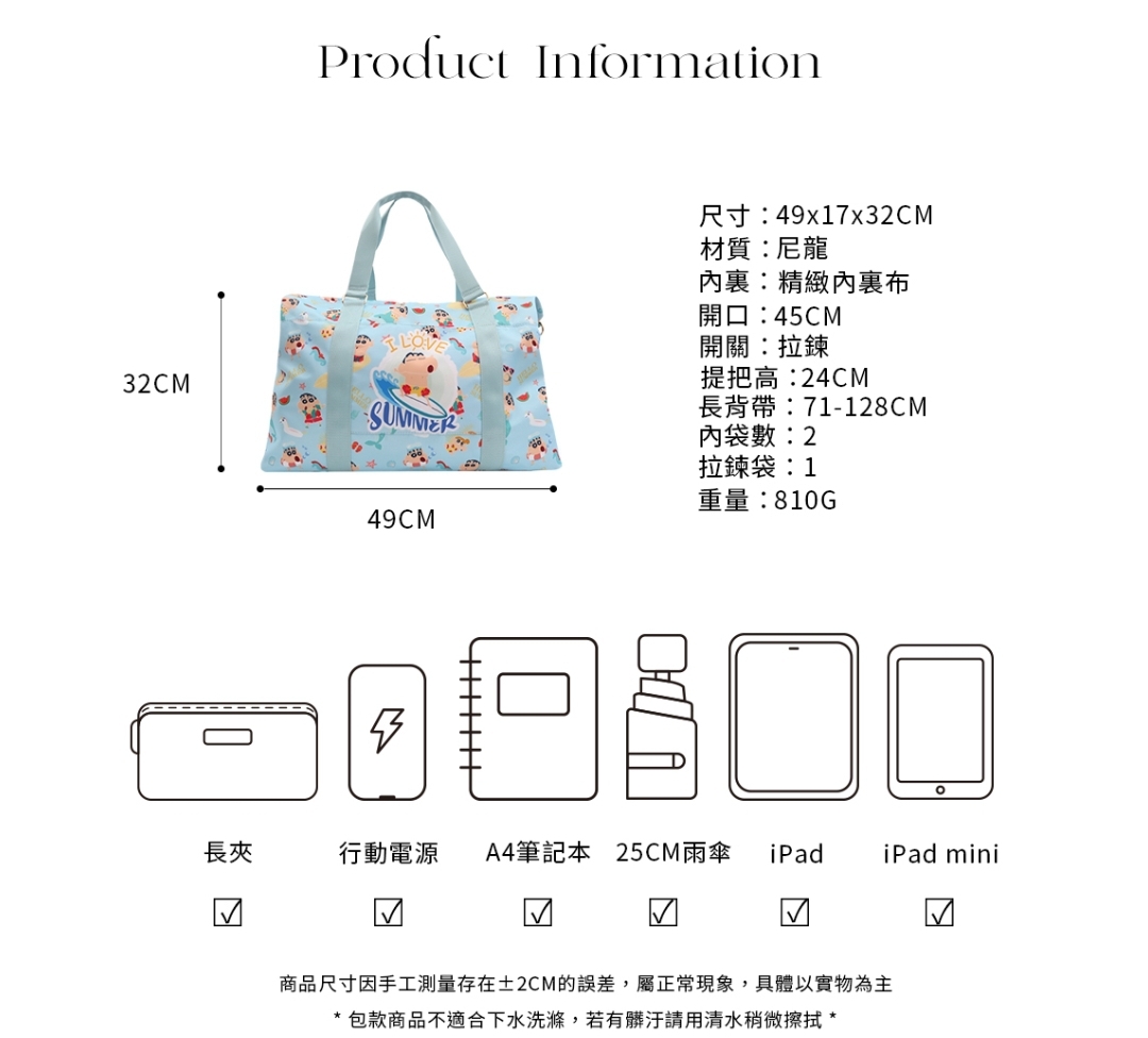 🇼🇸天蓝小舖-蜡笔小新缤纷夏日尼龙侧扣旅行袋 RM139 🌷西马包邮 ✅正版授权 ✅拉链开口有内裡,内有2个暗袋及1个拉链袋 ✅包前1个口袋,包后有1个拉鍊袋 ✅背面插带设计可套行李箱拉杆,附可调整长度背带 🇼🇸台湾代购中 赶快PM我们下单吧