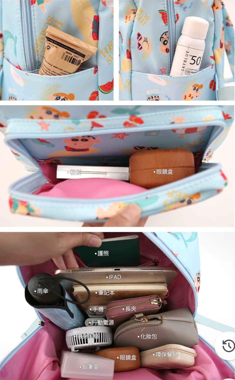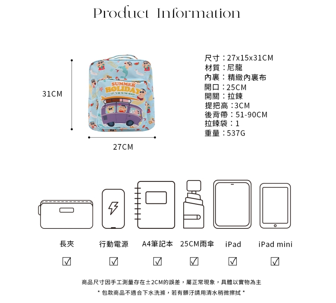 🇼🇸天蓝小舖-蜡笔小新缤纷夏日尼龙后背包 RM139 🌷西马包邮 ✅正版授权 ✅拉链开口有内裡 ✅内有1个拉链袋及1个夹层袋 ✅包前1个拉链袋,两侧皆有口袋层 ✅后背带可调整长度 🇼🇸台湾代购中 赶快PM我们下单吧