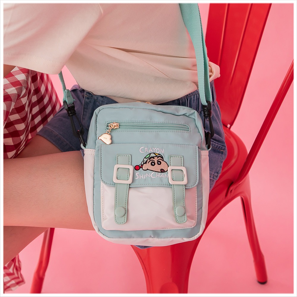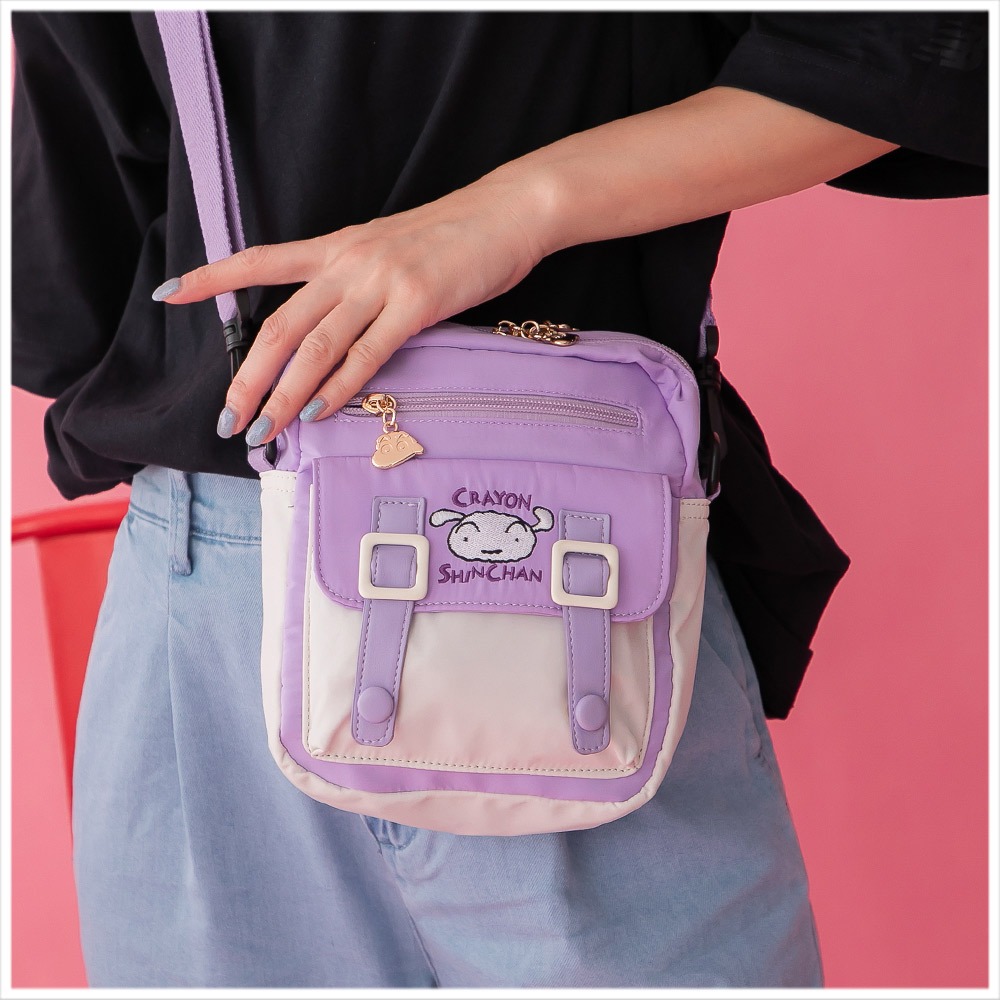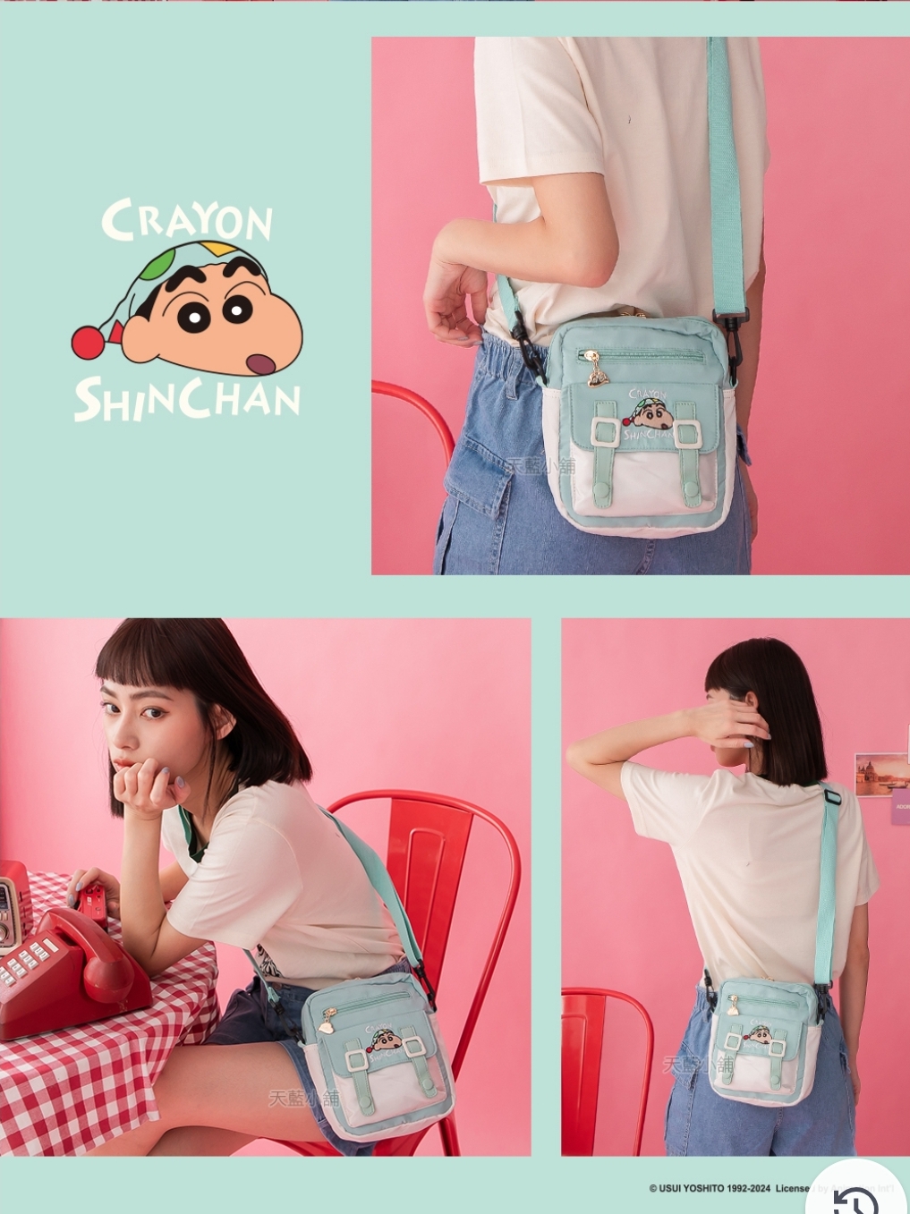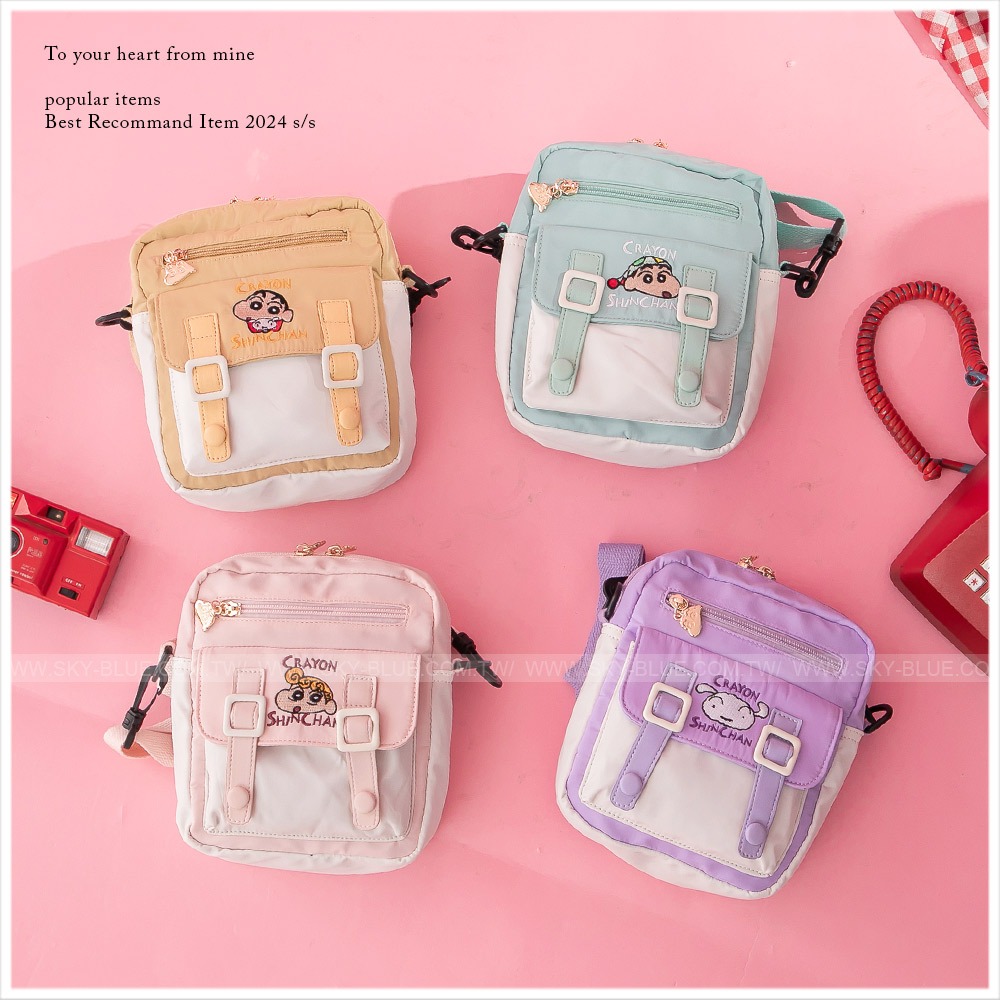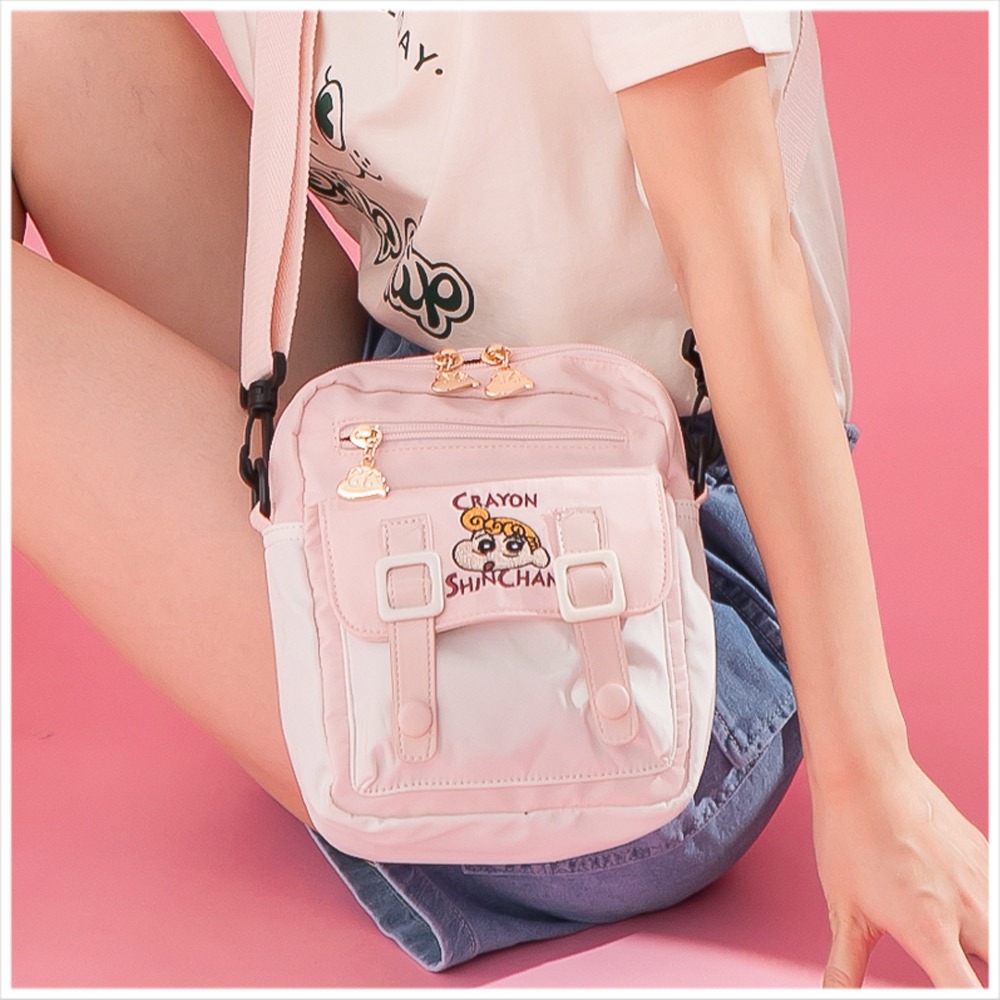 🇼🇸天蓝小舖-蜡笔小新轻柔粉彩刺绣配色斜背包