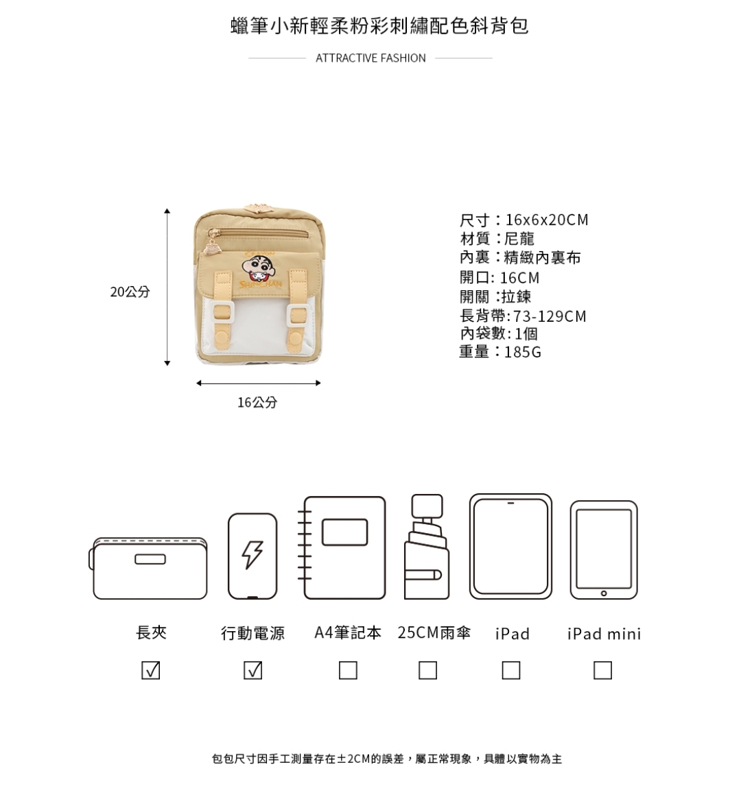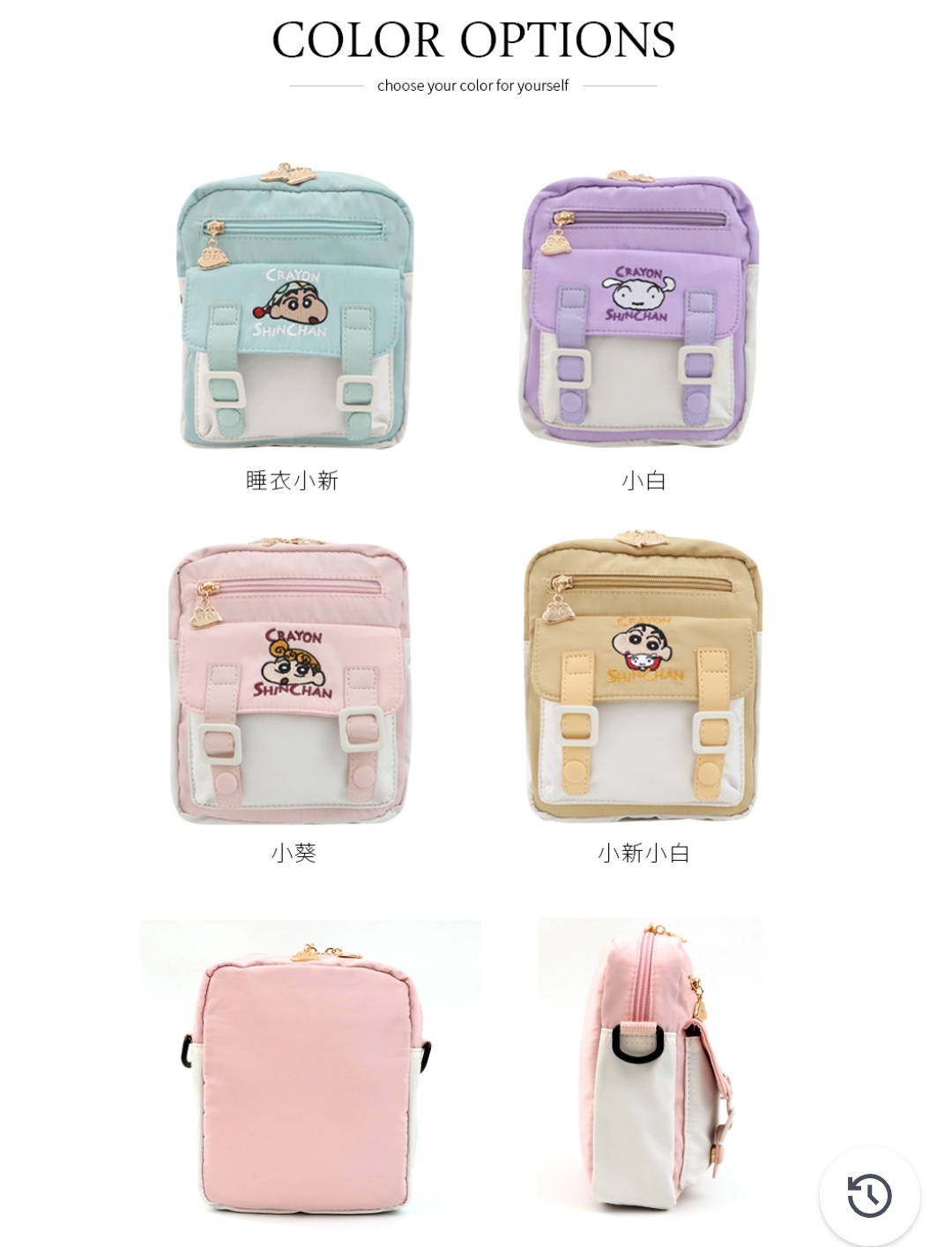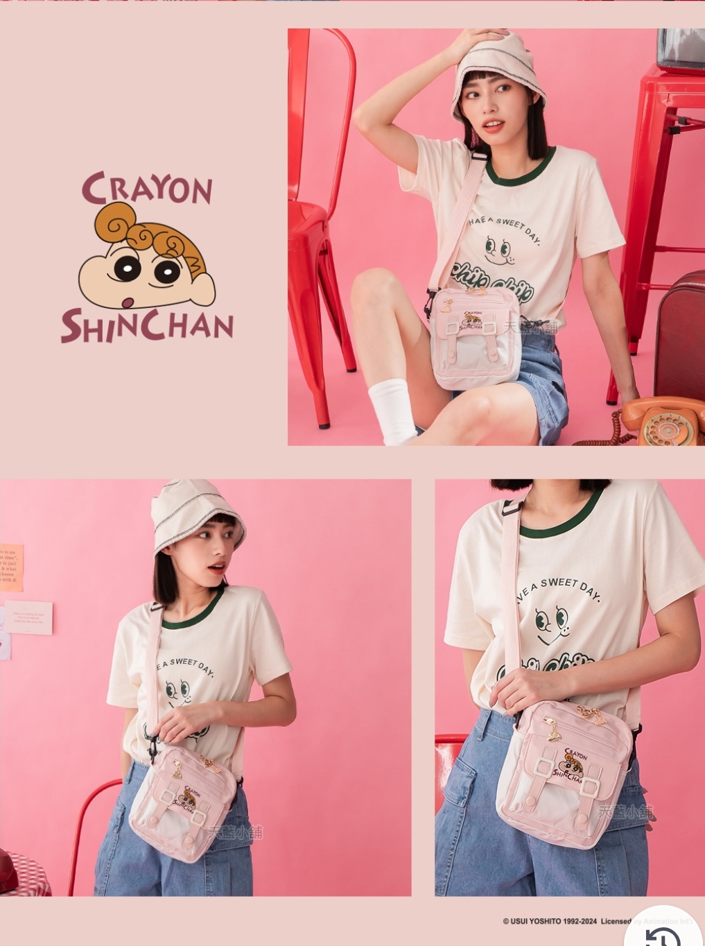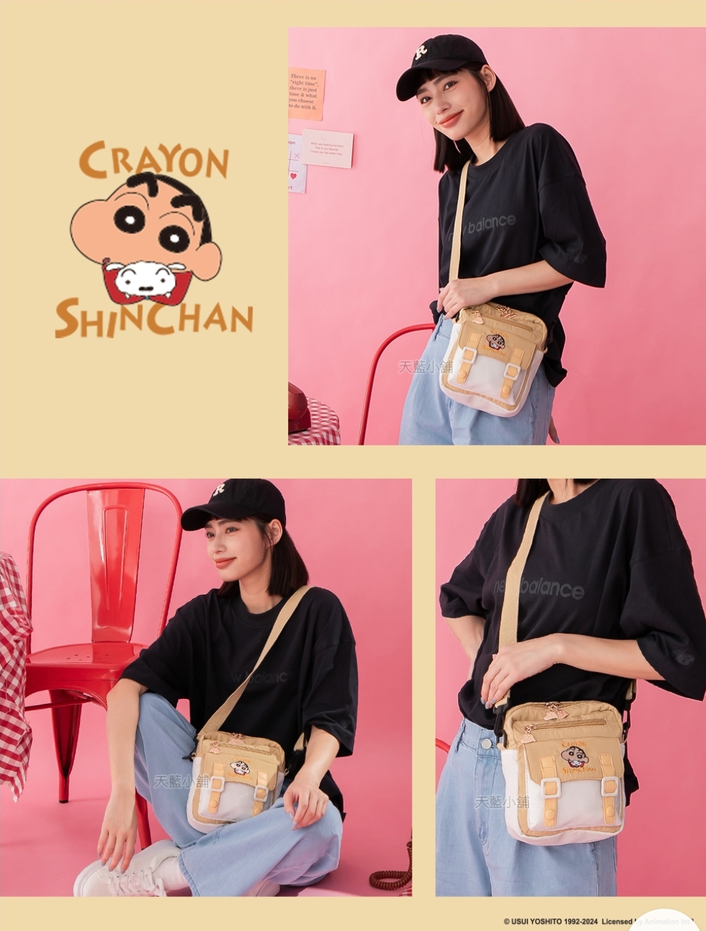 🇼🇸天蓝小舖-蜡笔小新轻柔粉彩刺绣配色斜背包