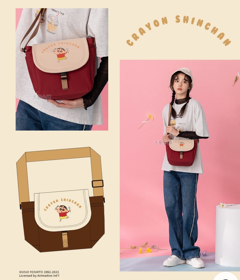 🇼🇸天蓝小舖-蜡笔小新Q萌人物配色邮差包