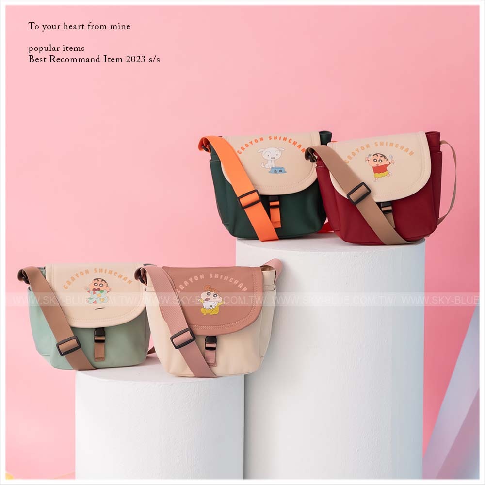 🇼🇸天蓝小舖-蜡笔小新Q萌人物配色邮差包 RM135 🌷西马包邮 ✅包前后各1口袋 ✅包两侧皆有侧袋 ✅包主层插扣+拉鍊开口设计有内裡 ✅内有1拉鍊袋2暗袋 ✅背带可调整长度 ✅尼龙材质耐髒耐用好擦洗 🇼🇸台湾代购中 赶快PM我们下单吧