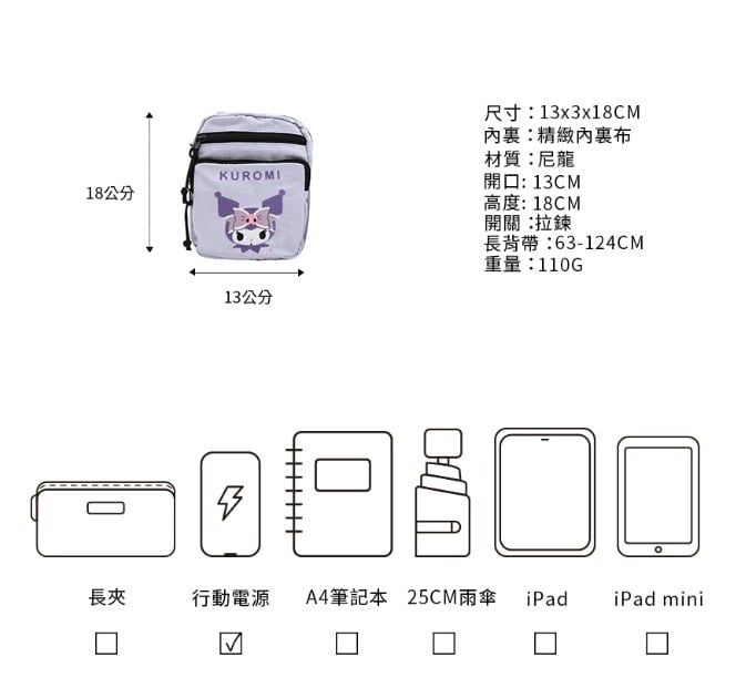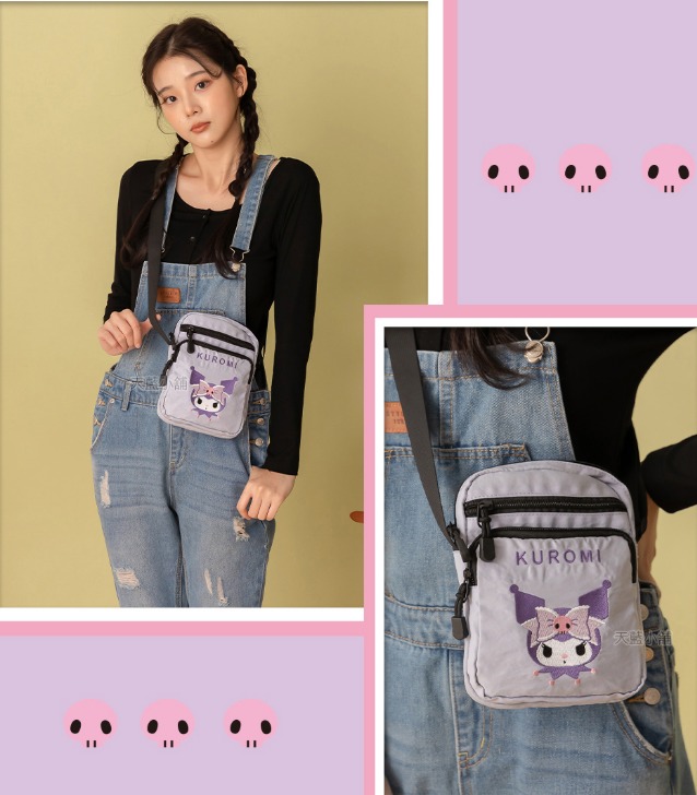 🇼🇸天蓝小舖-酷洛米刺绣尼龙斜背小包 RM105 🌷西马包邮 ✅正版授权 ✅包拉鍊开口有内裡 ✅包前2个拉鍊袋 ✅包后1个暗袋,背带可调整长度 🇼🇸台湾代购中 赶快PM我们下单吧