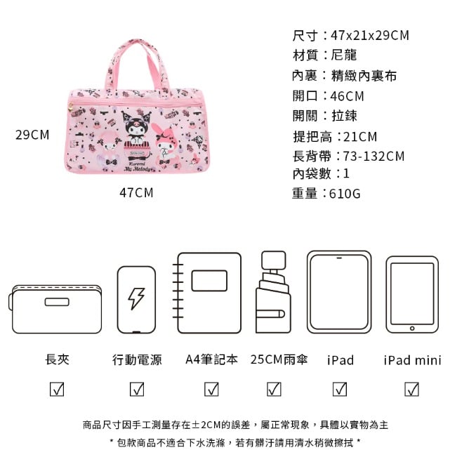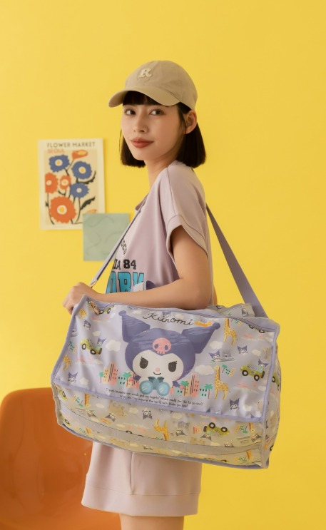 🇼🇸天蓝小舖-酷洛米满版图样尼龙大款旅行袋 RM105 🌷西马包邮 ✅正版授权 包拉鍊开口有内裡 ✅内有2个暗袋及1个拉鍊袋,包前1个口袋 ✅两侧各一个魔鬼毡暗袋 ✅背面插带设计可套行李箱拉杆 ✅附可调整长背带 ✅超大容量适合四至五天旅行使用 🇼🇸台湾代购中 赶快PM我们下单吧