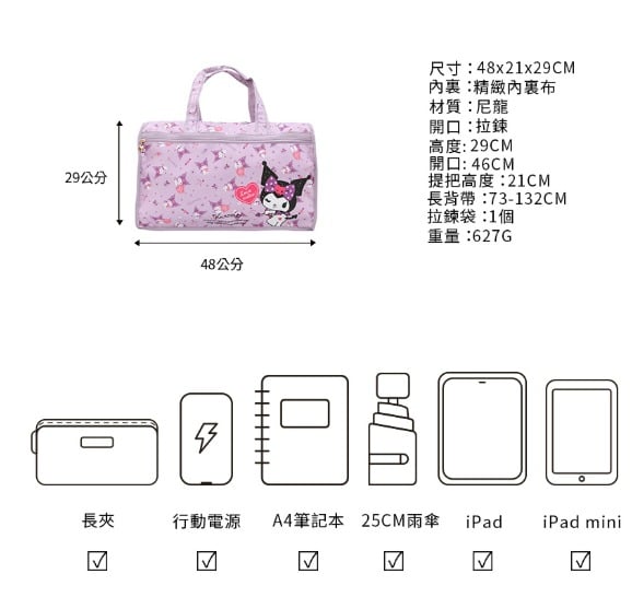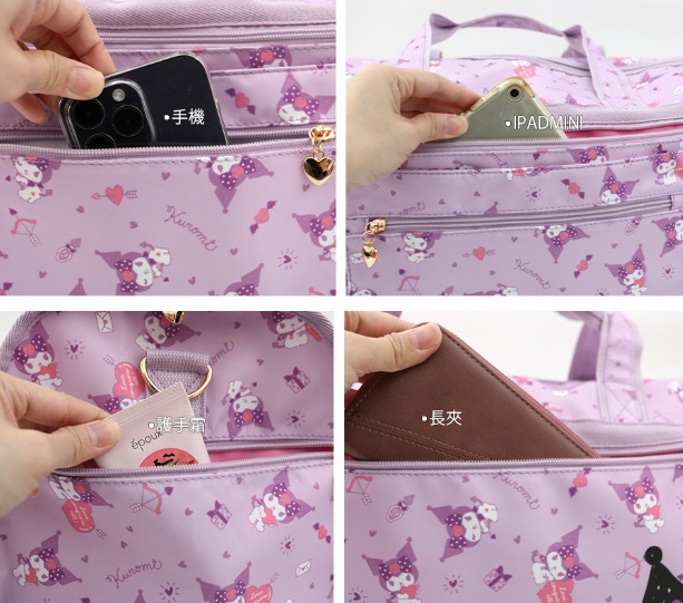 🇼🇸天蓝小舖-酷洛米粉紫梦境满版图样大款旅行袋 RM105 🌷西马包邮 ✅正版授权 ✅包拉鍊开口有内裡,内有1个拉鍊袋 ✅包身前与两侧皆有1个拉鍊袋,包身后有2个拉鍊袋 ✅背面插带设计可套行李箱拉杆,附可调整长度背带 🇼🇸台湾代购中 赶快PM我们下单吧