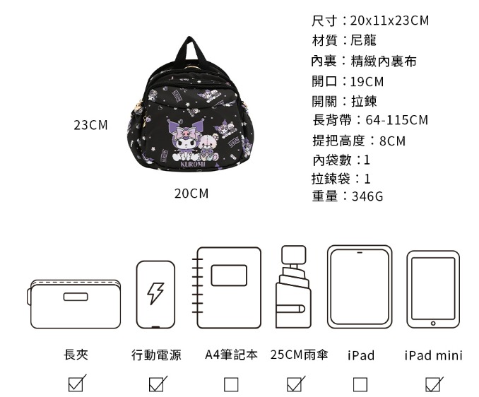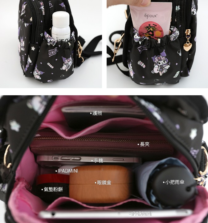 🇼🇸天蓝小舖-酷洛米黑萌出道尼龙两用圆形后背包 RM105 🌷西马包邮 ✅正版授权,包拉鍊开口有内裡 ✅内有1拉鍊袋1暗袋,包身前有1拉鍊袋 ✅内有1拉鍊袋1暗袋,包身前有1拉鍊袋 ✅包身两侧皆有缩口袋,附2条可调整长背带可斜背及后背 🇼🇸台湾代购中 赶快PM我们下单吧