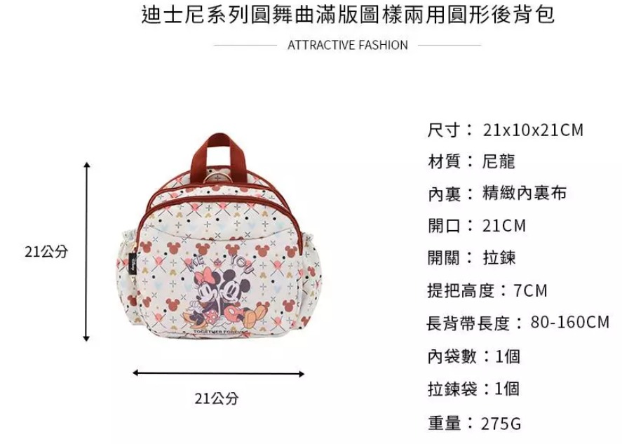 正版Disney绝版打折优惠‼️ 迪士尼系列圆舞曲满版图样两用圆形后背包 ❌原价RM89❌ 现在打折 只需RM69 剩最后数量 先汇款先得哟 🇼🇸台湾代购 赶快PM我们下单📲🛒