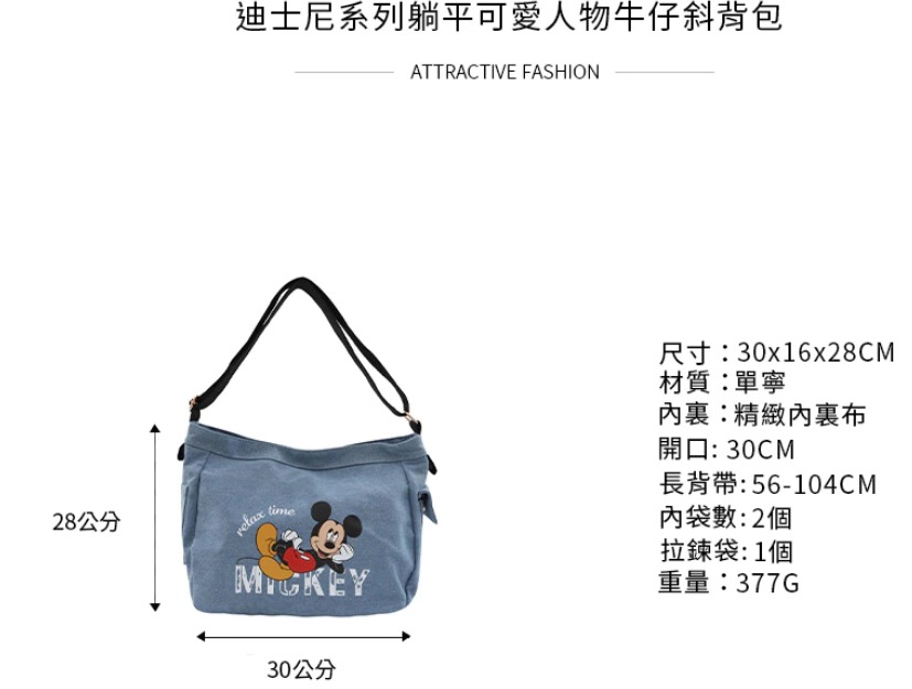 🇼🇸正版迪士尼系列躺平可爱人物牛仔斜背包